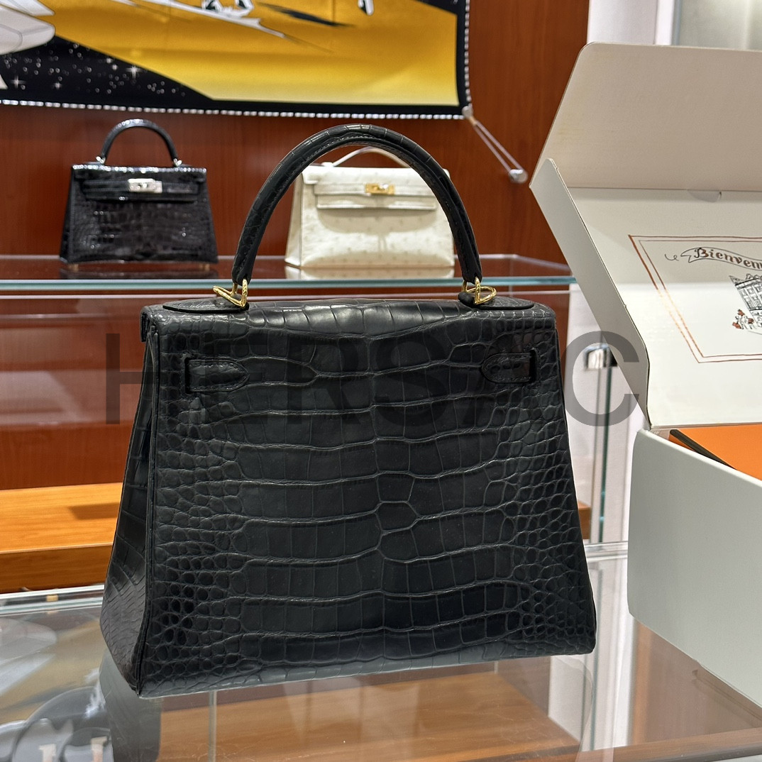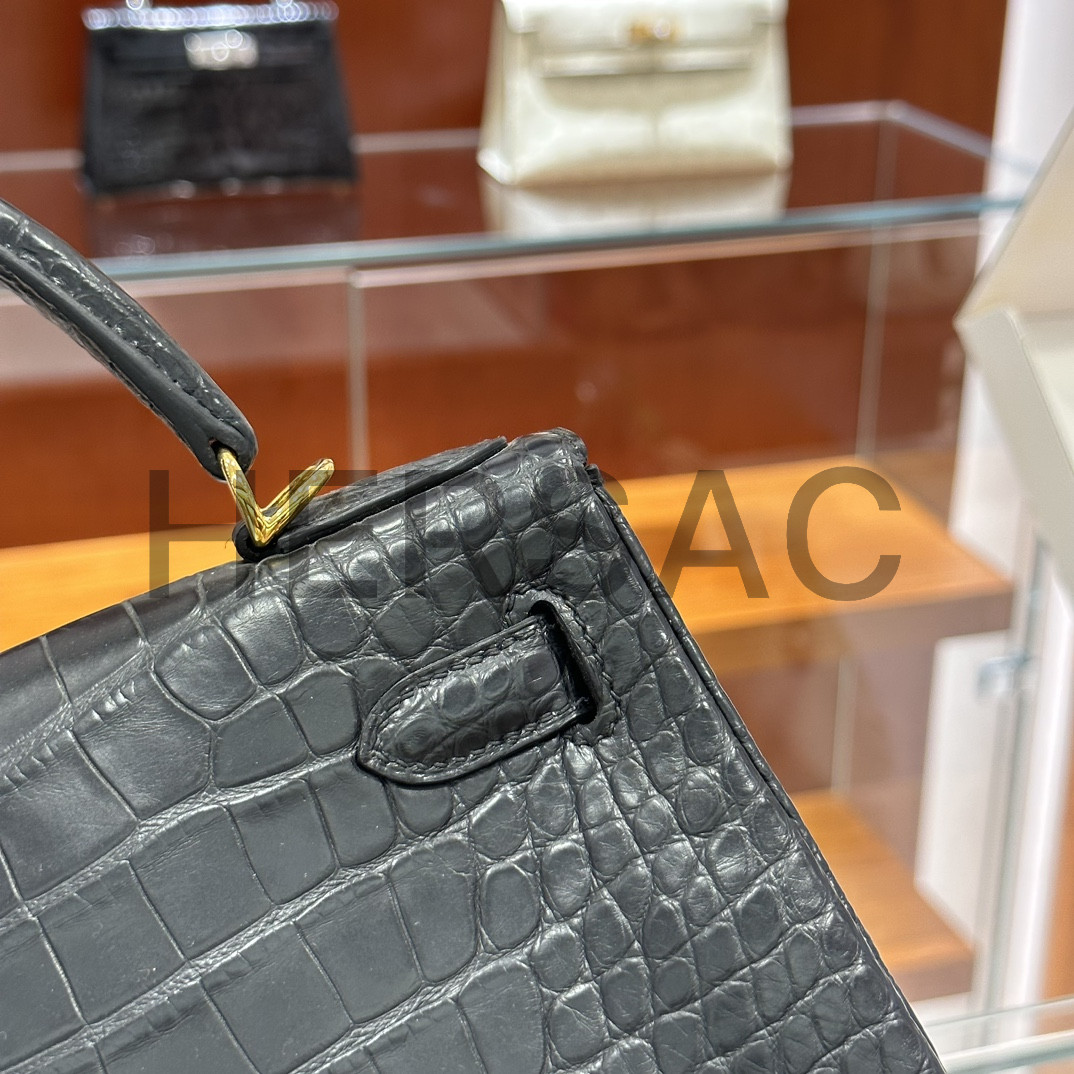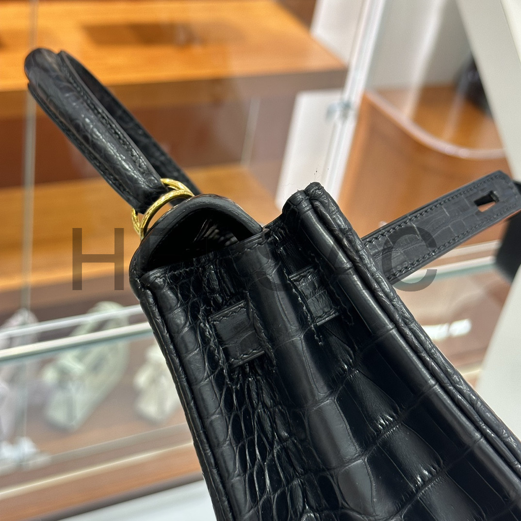 에르메스 켈리 25 엘리게이터 블랙 골드 H035942CC89