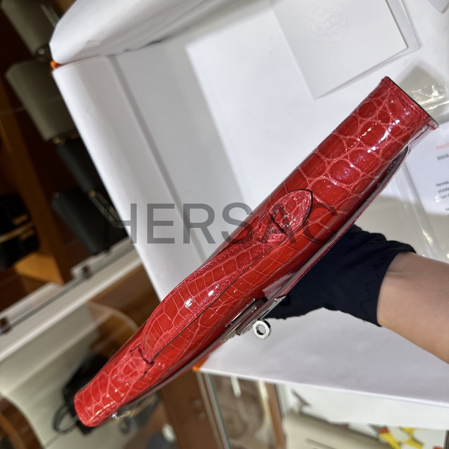 Hermes Kelly cut Nile Crocodile Braise Silver > 토트백