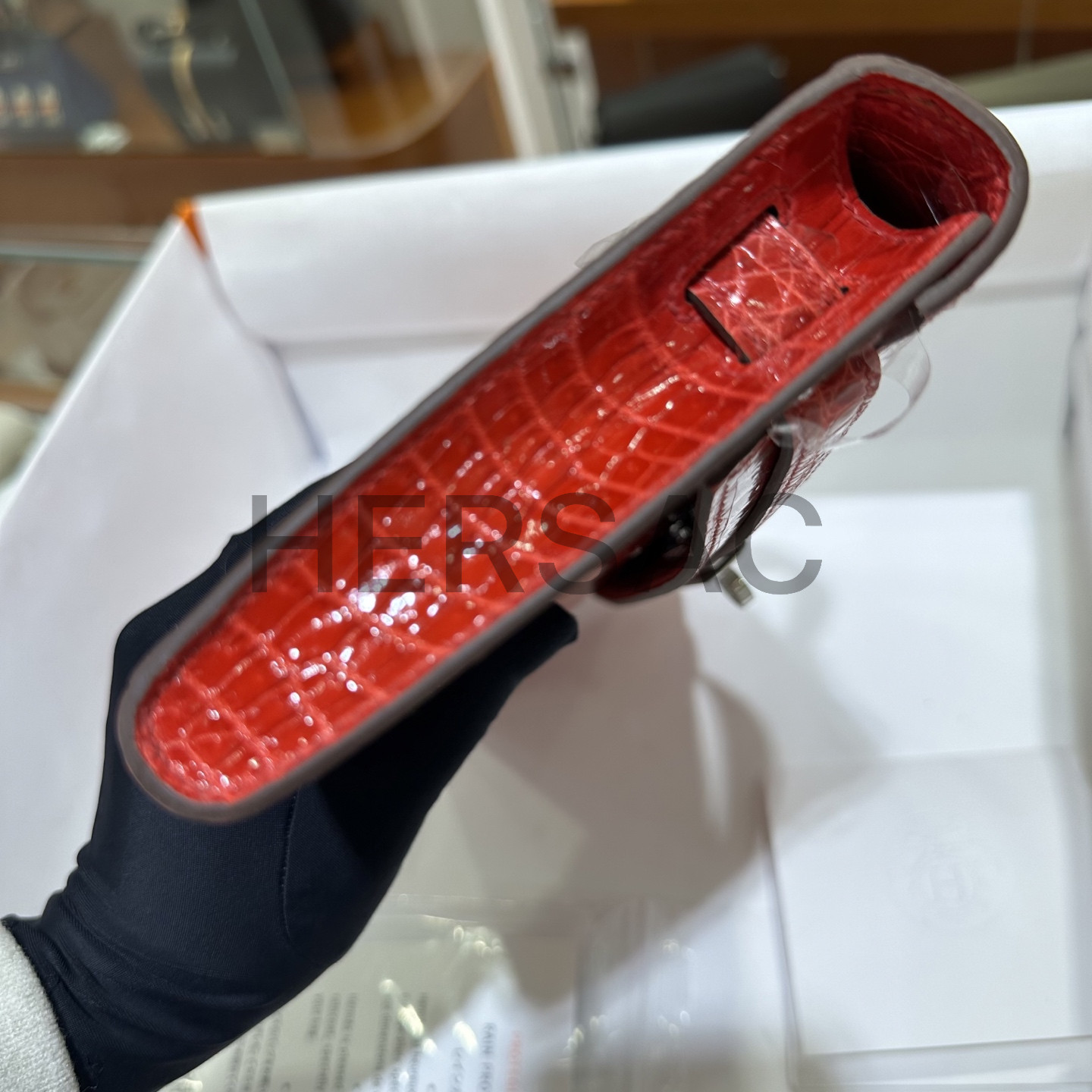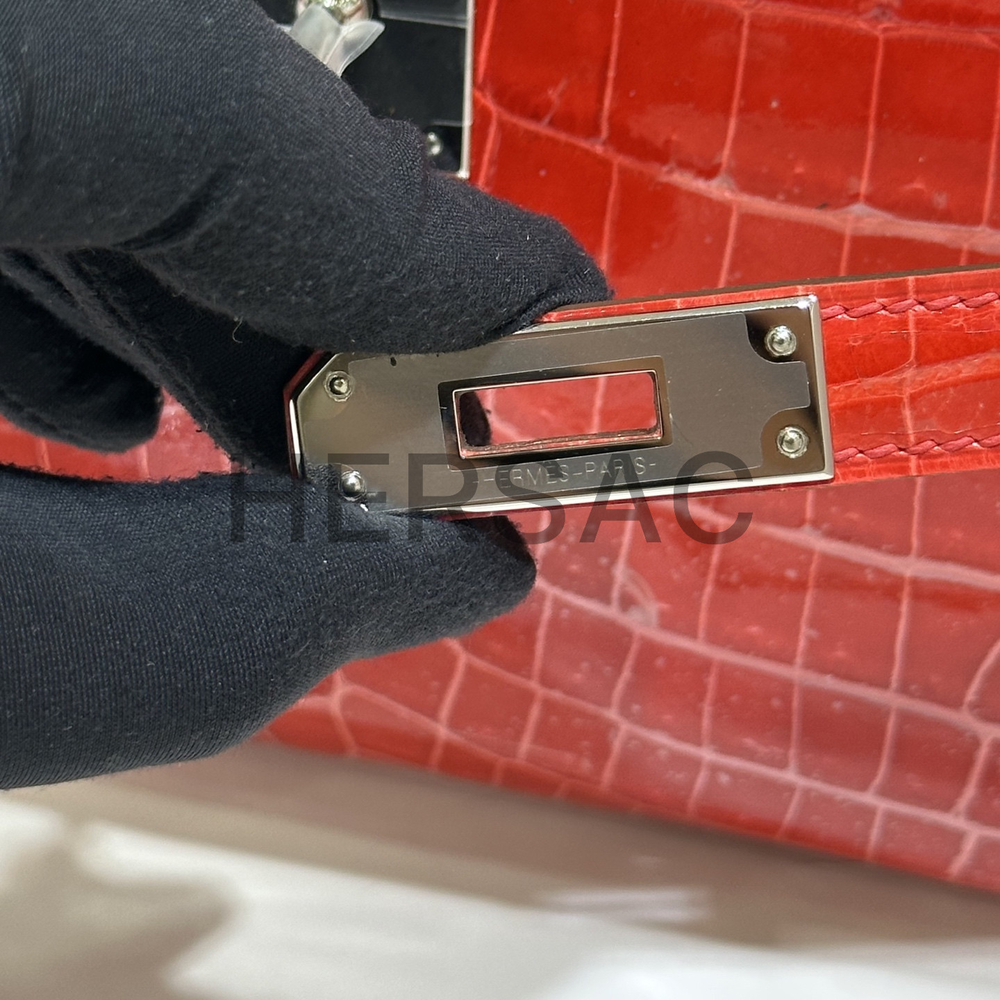 에르메스 켈리 컷 나일 악어 브레이즈 실버