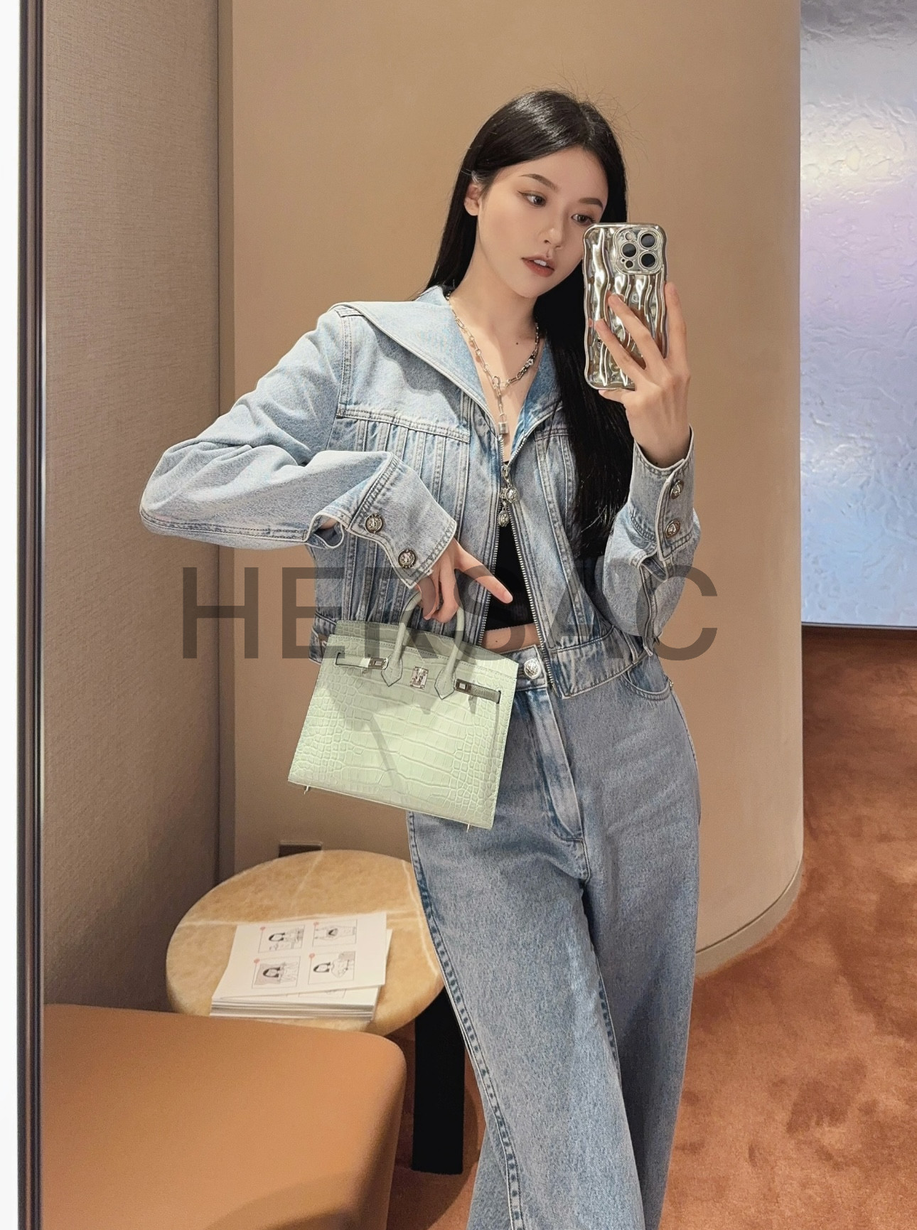에르메스 버킨 20 엘리게이터 버트 도 실버
