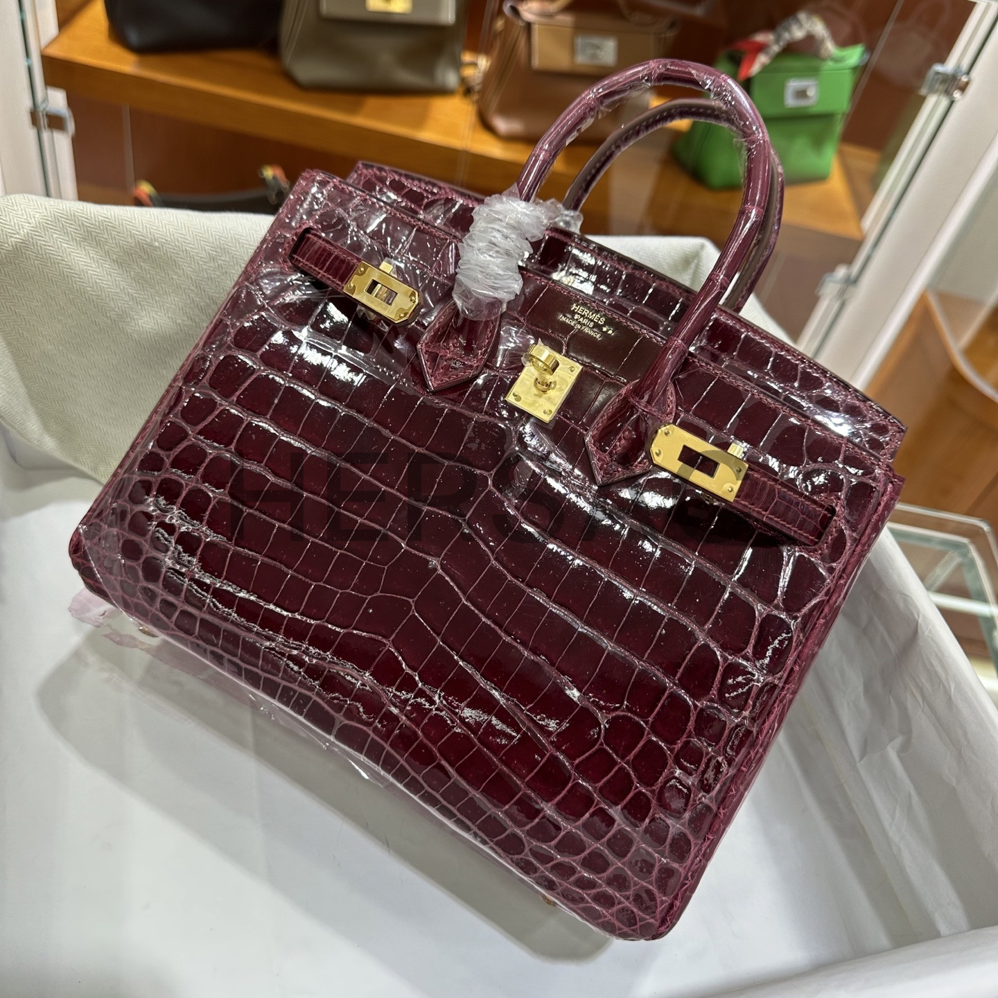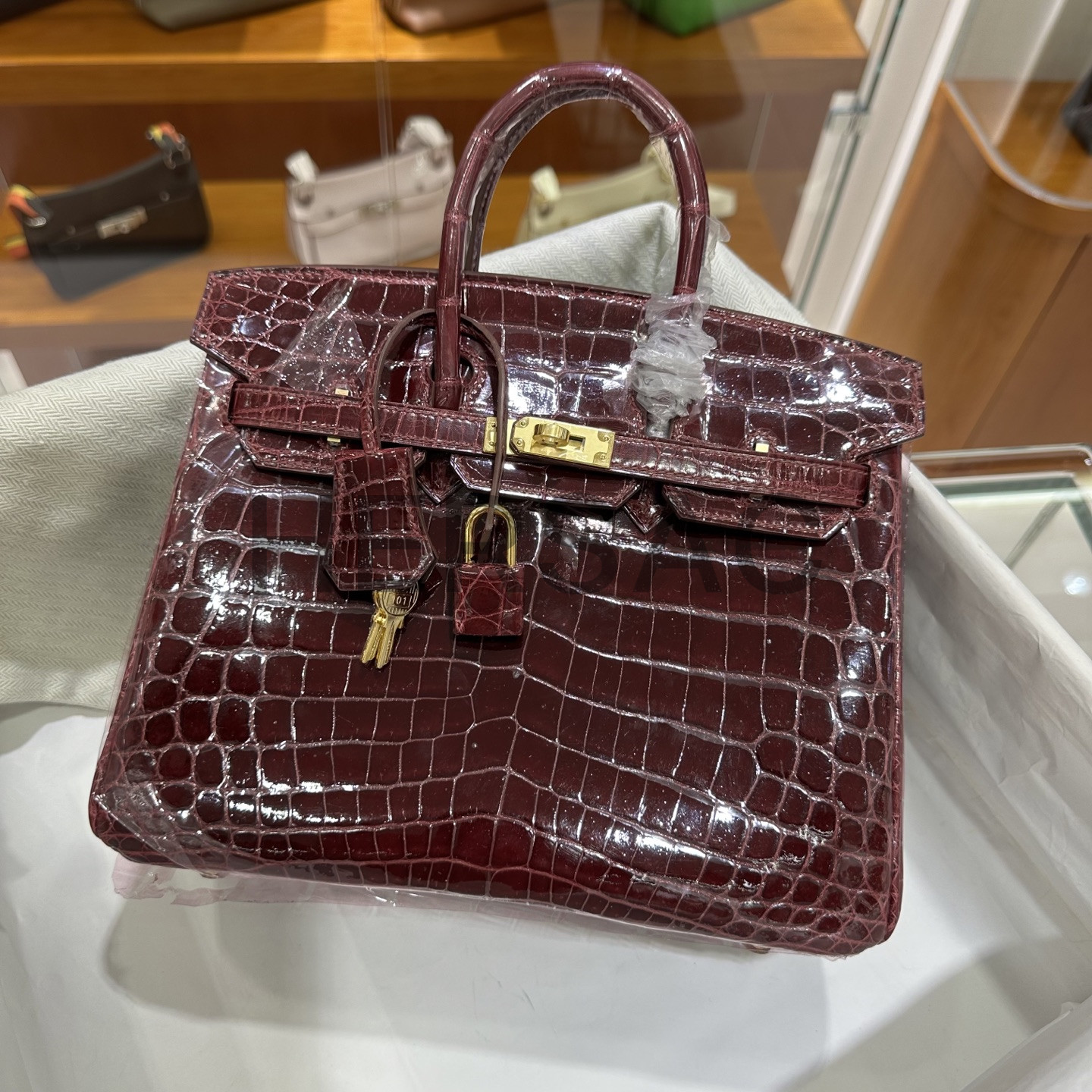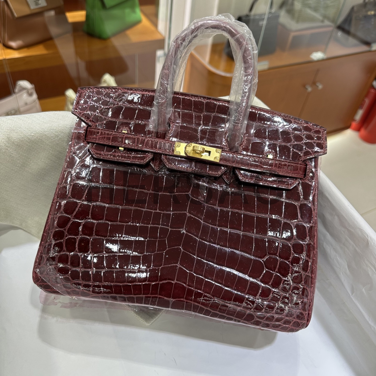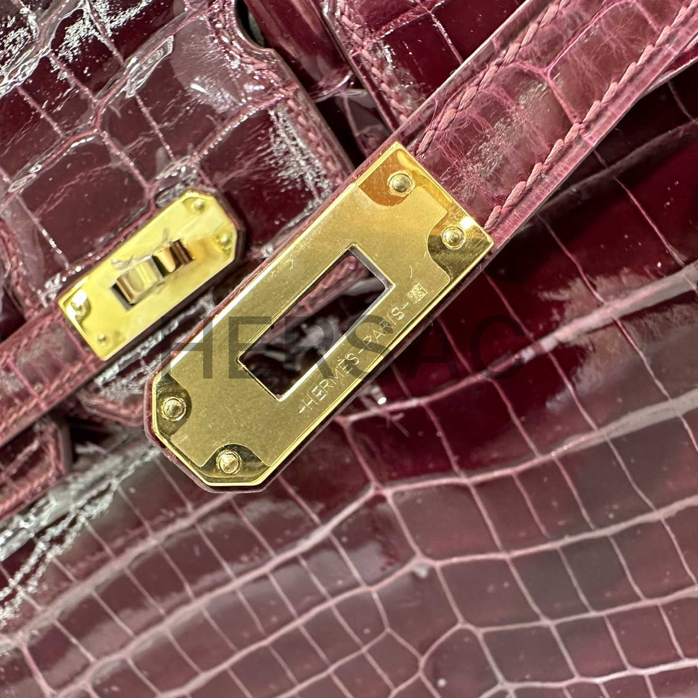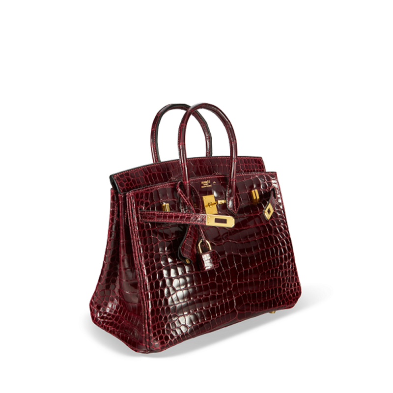 에르메스 버킨 25 나일 악어 보르도 골드
