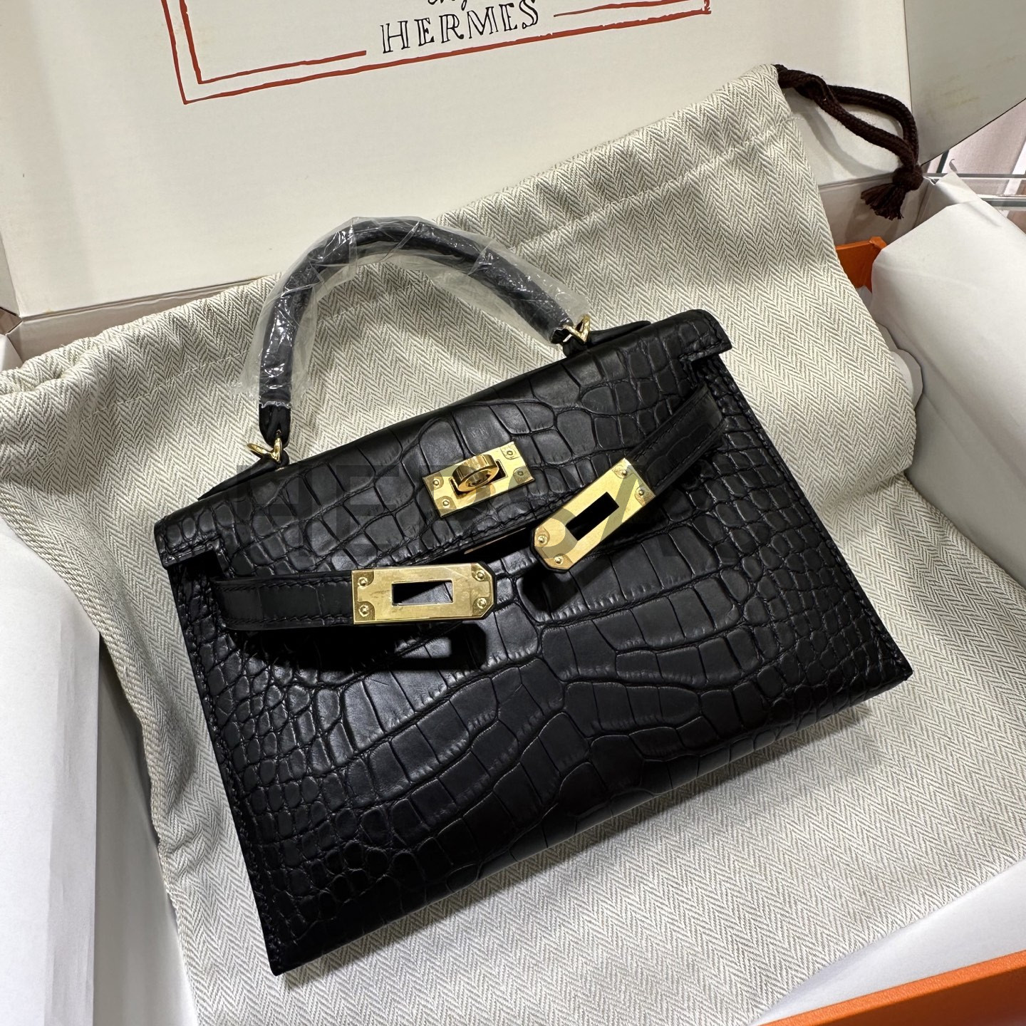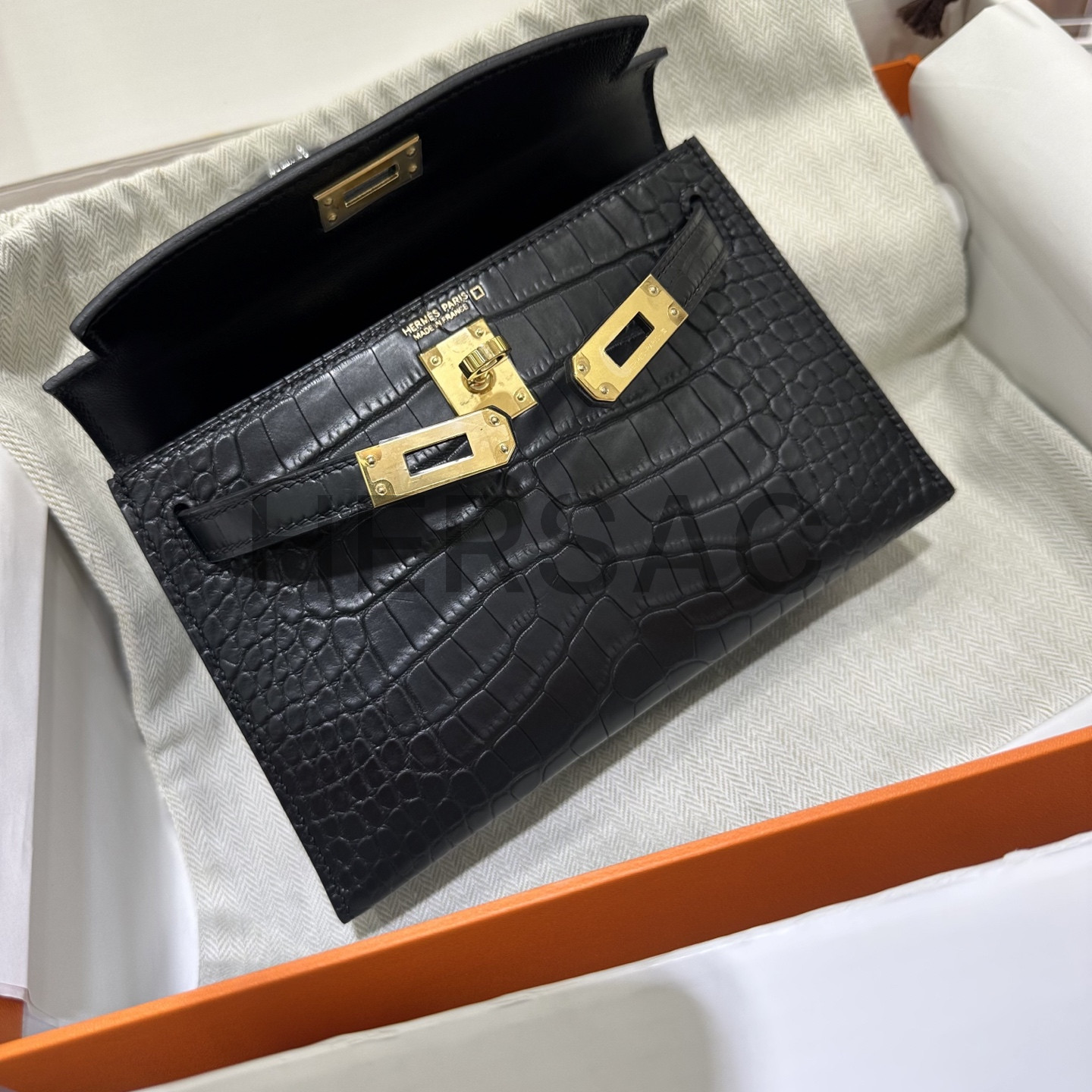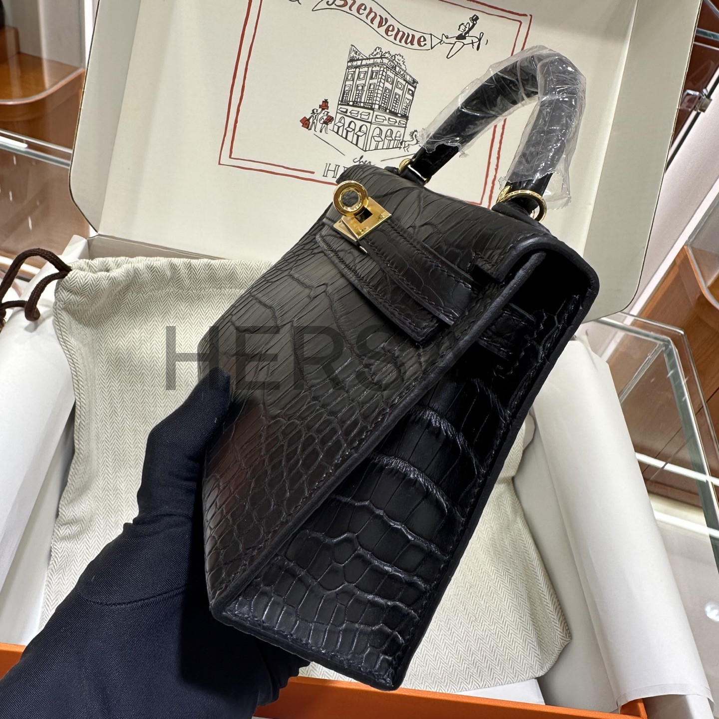 에르메스 미니 켈리 II 엘리게이터 블랙 골드