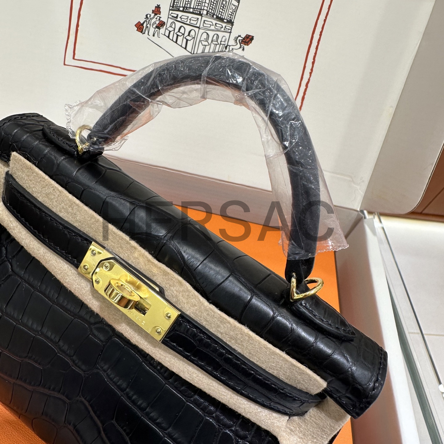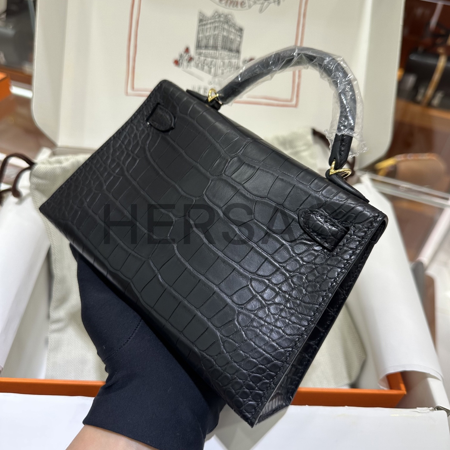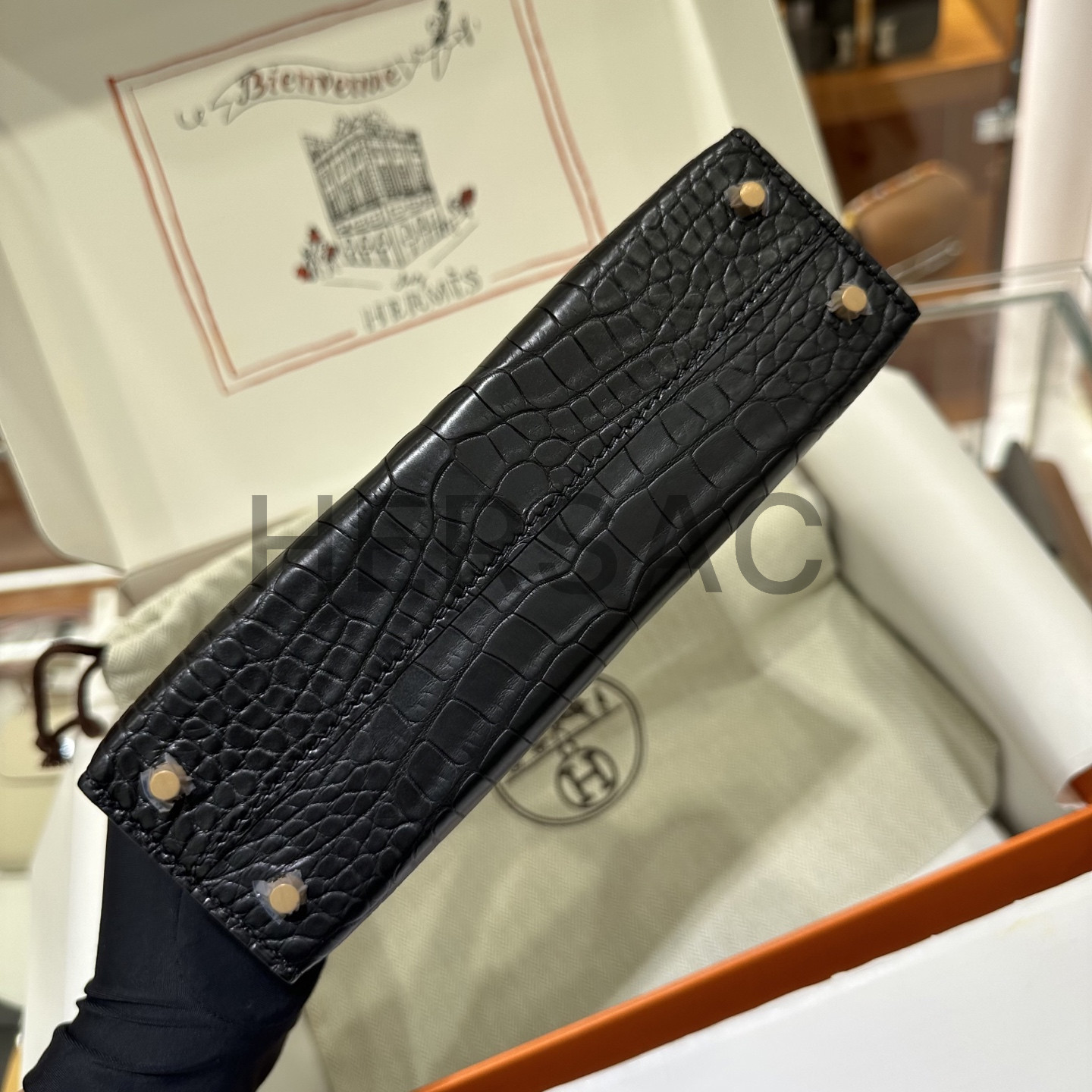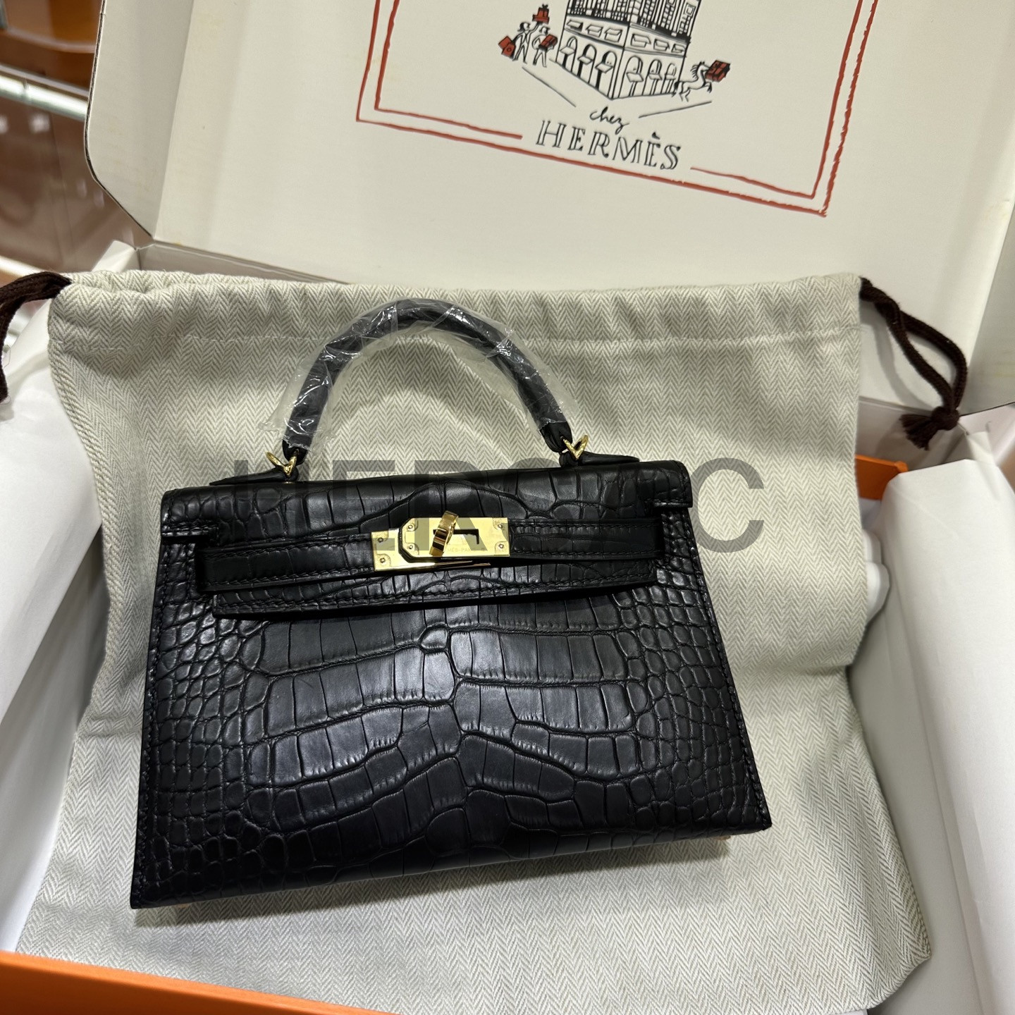 에르메스 미니 켈리 II 엘리게이터 블랙 골드