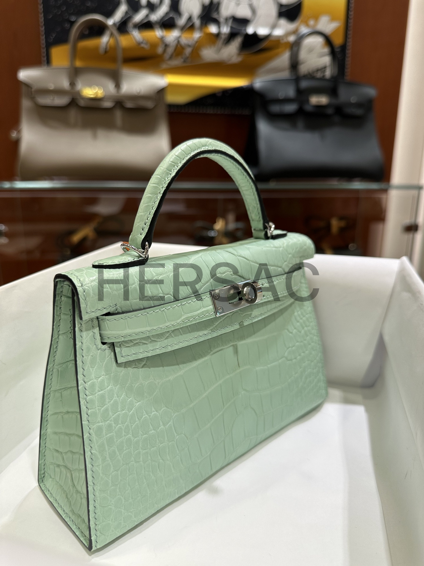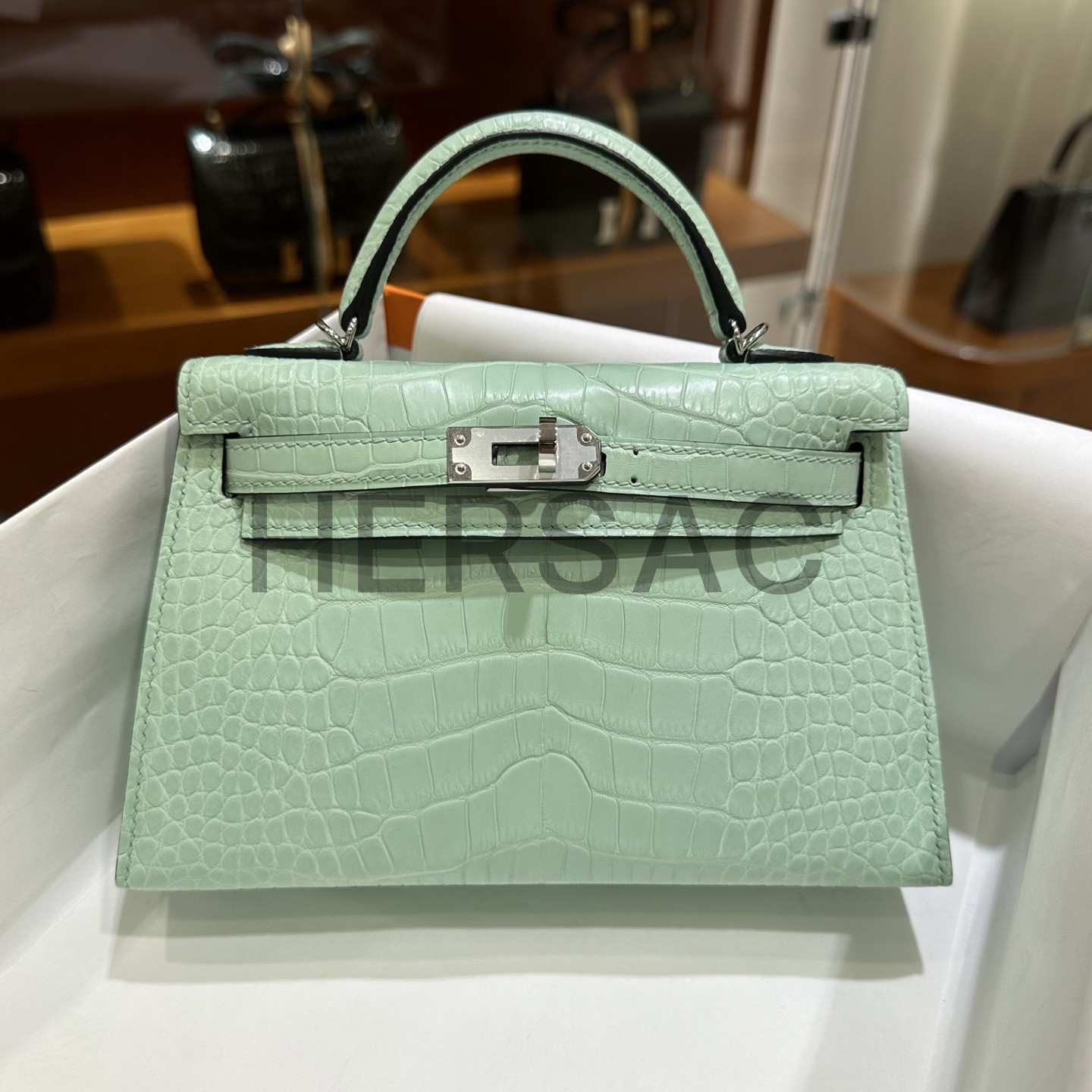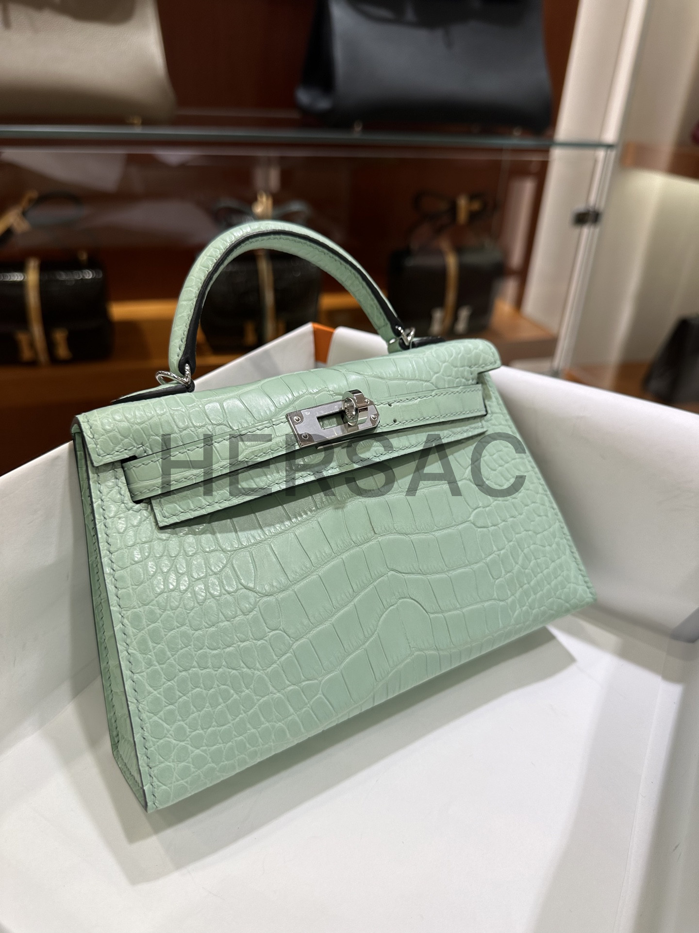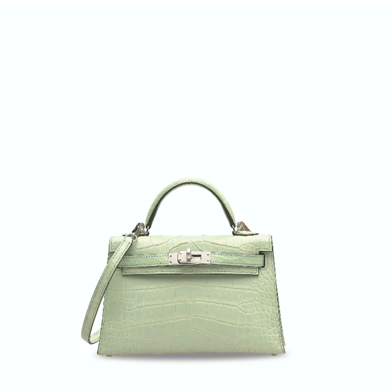 Hermes Kelly Mini II Alligator Vert deau Silver