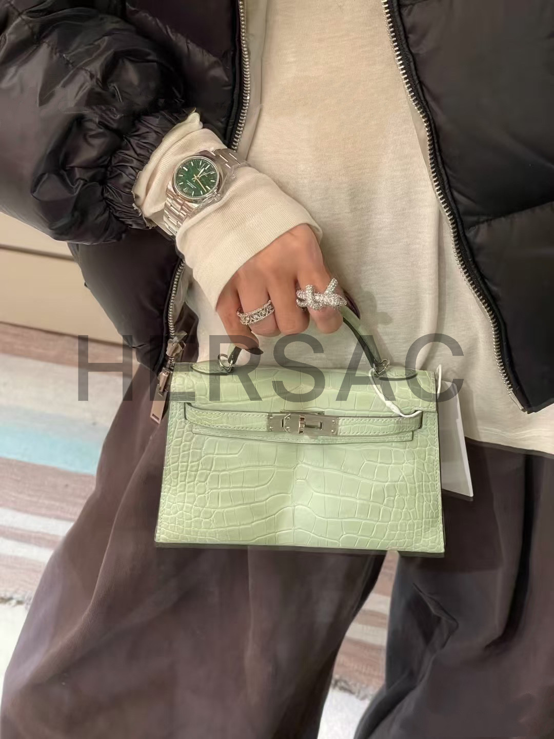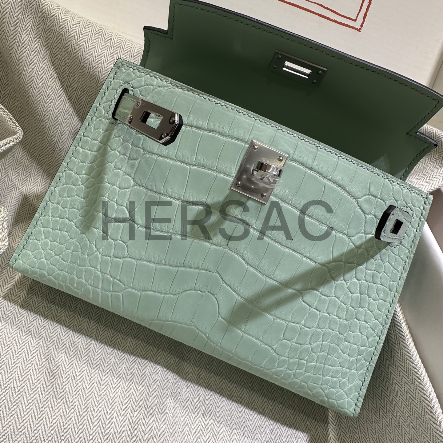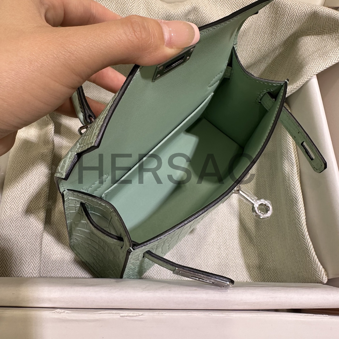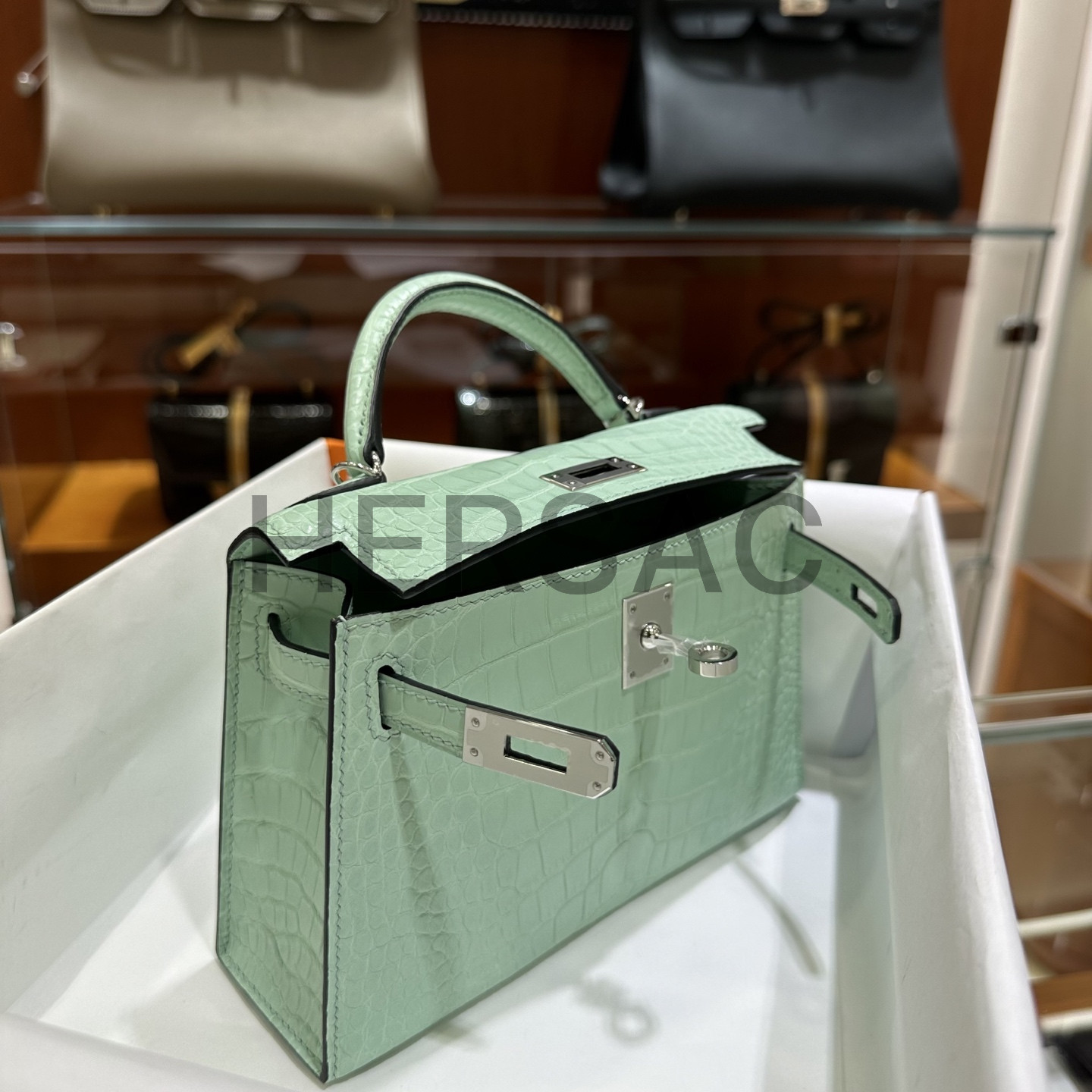 Hermes Kelly Mini II Alligator Vert deau Silver