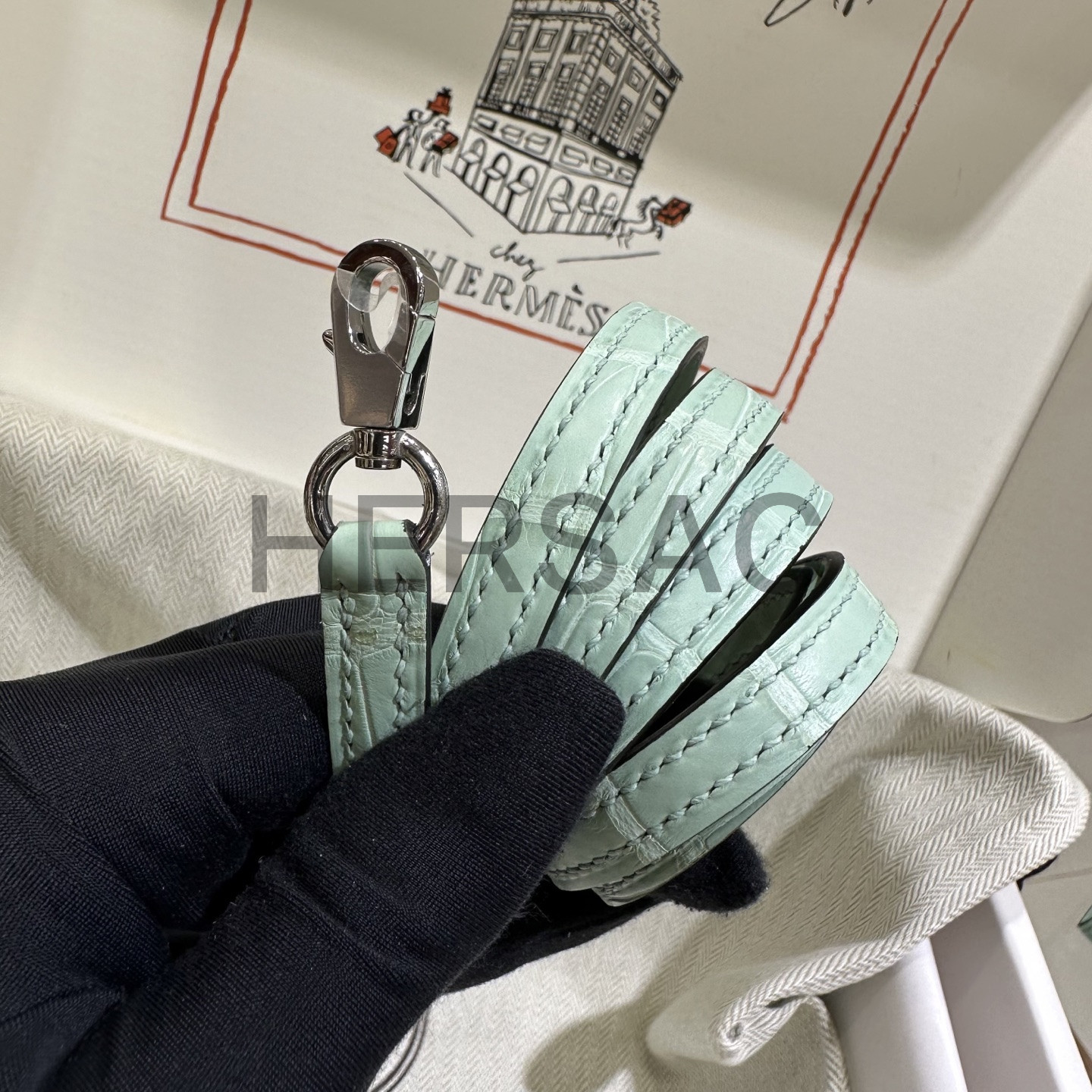 에르메스 미니 켈리 II 엘리게이터 버트 도 실버