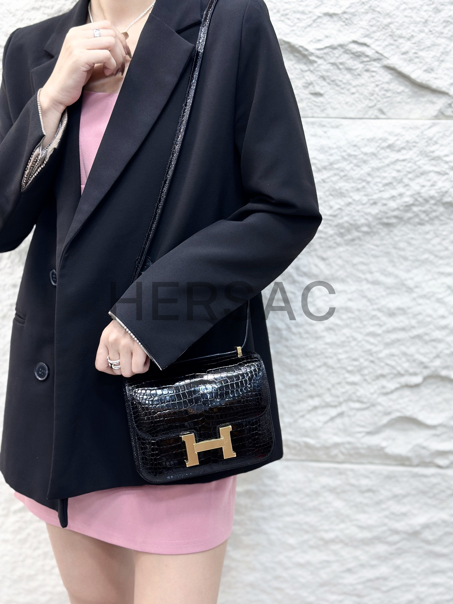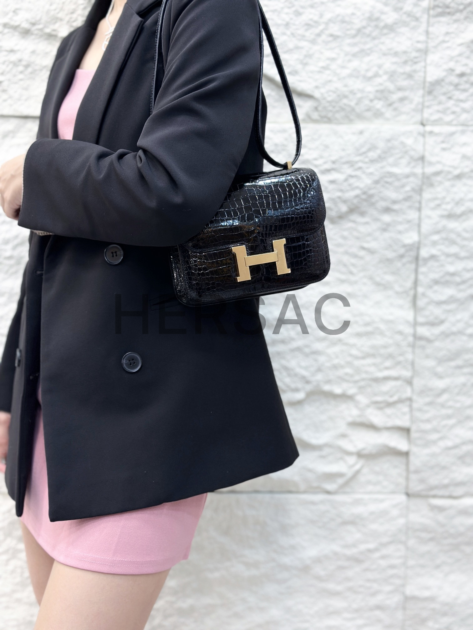 Hermes Constance 19 Porosus Noir Gold > 크로스백