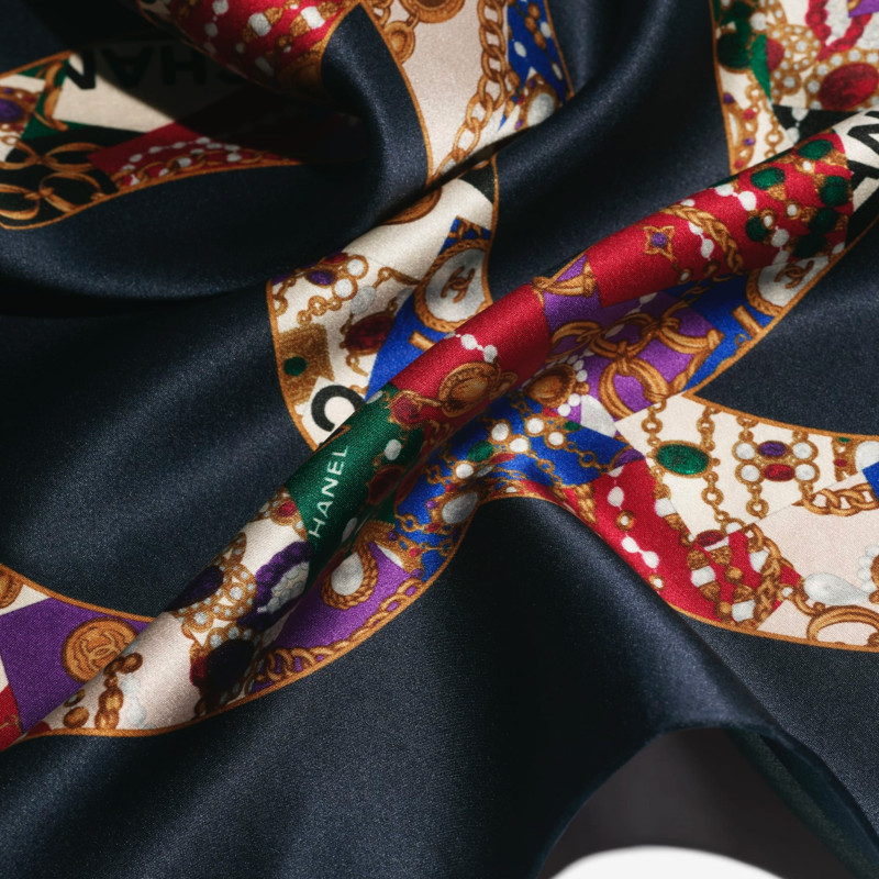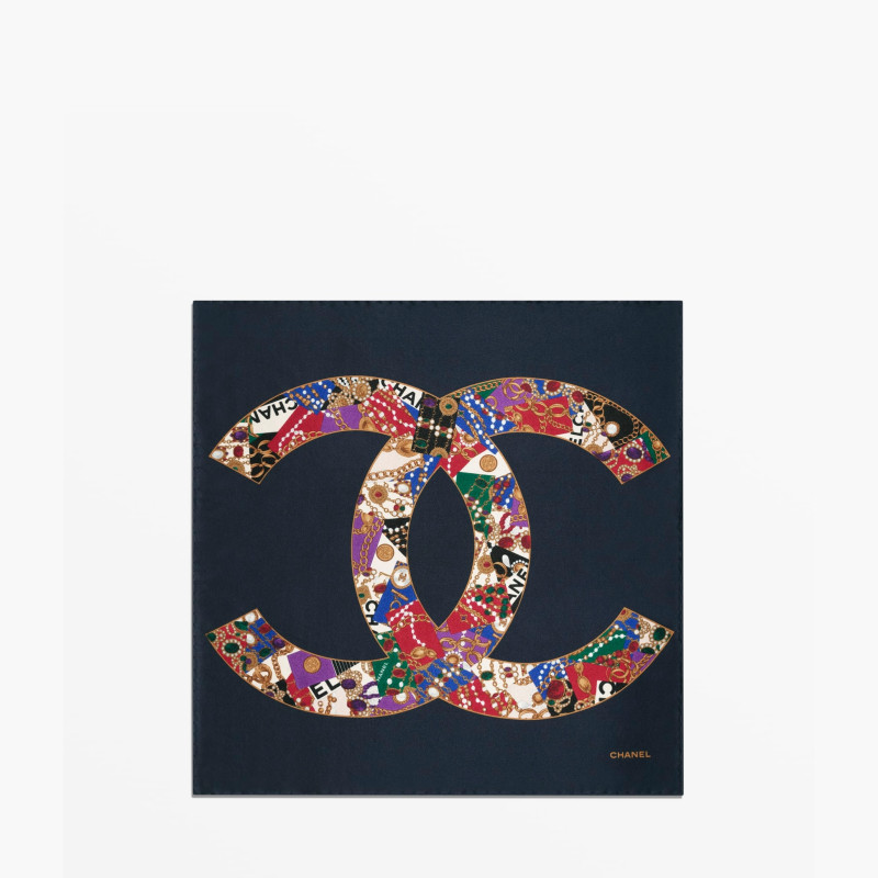 샤넬 미니 반다나 실크 새틴 네이비 블루 골드 멀티컬러 AAB602-B22860-U5671