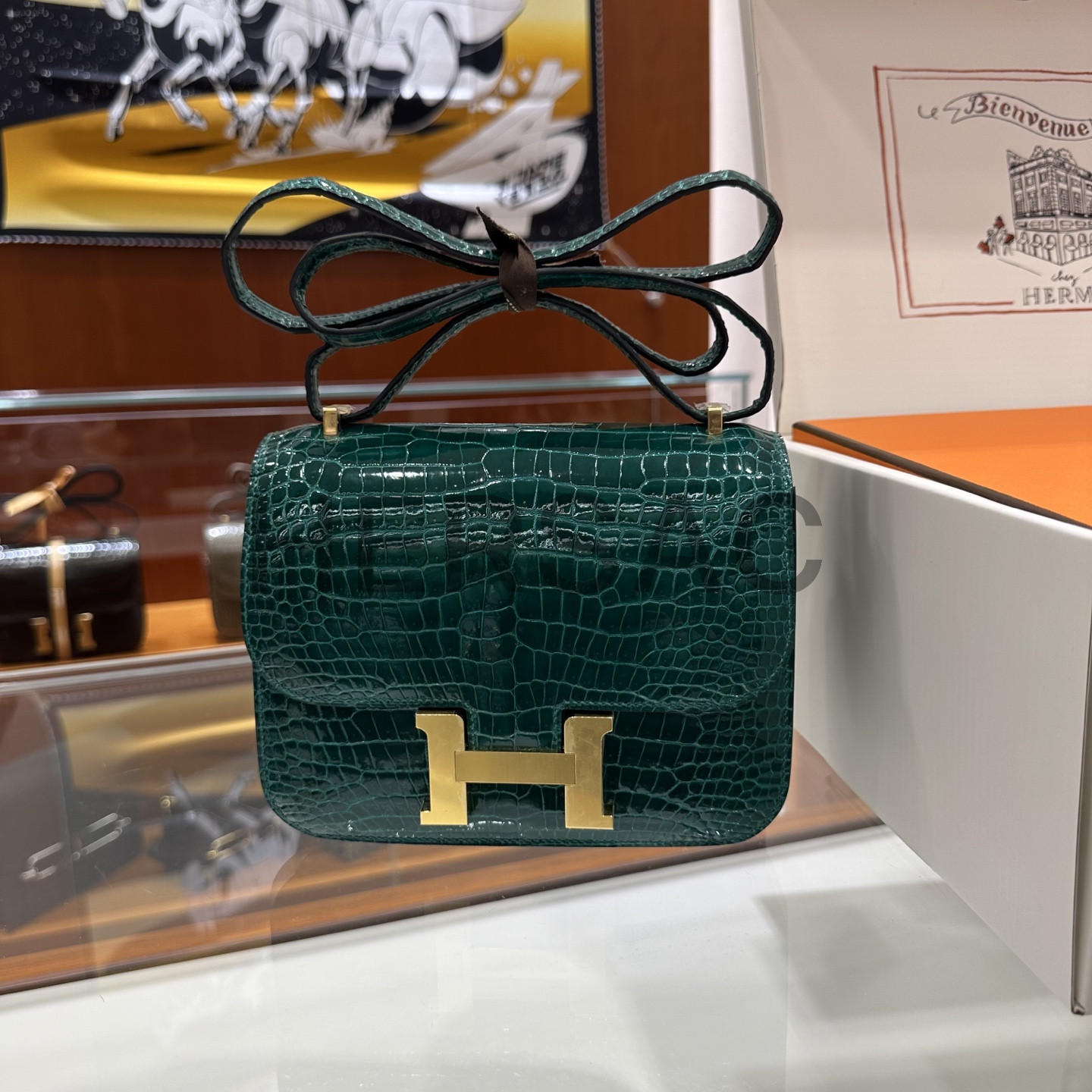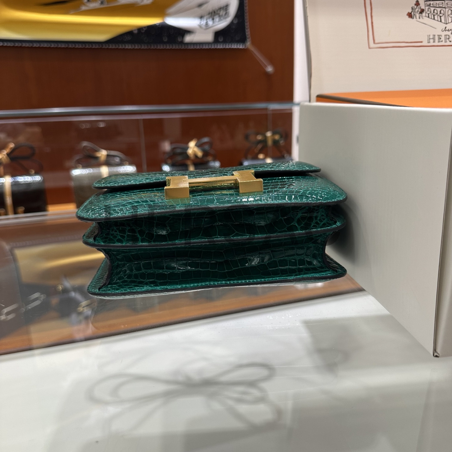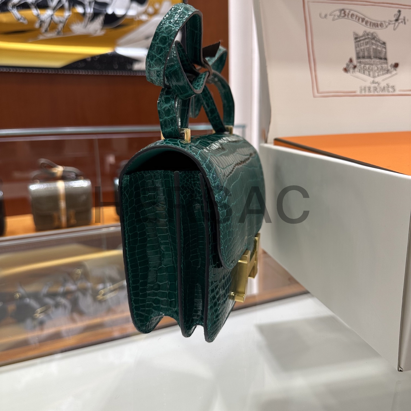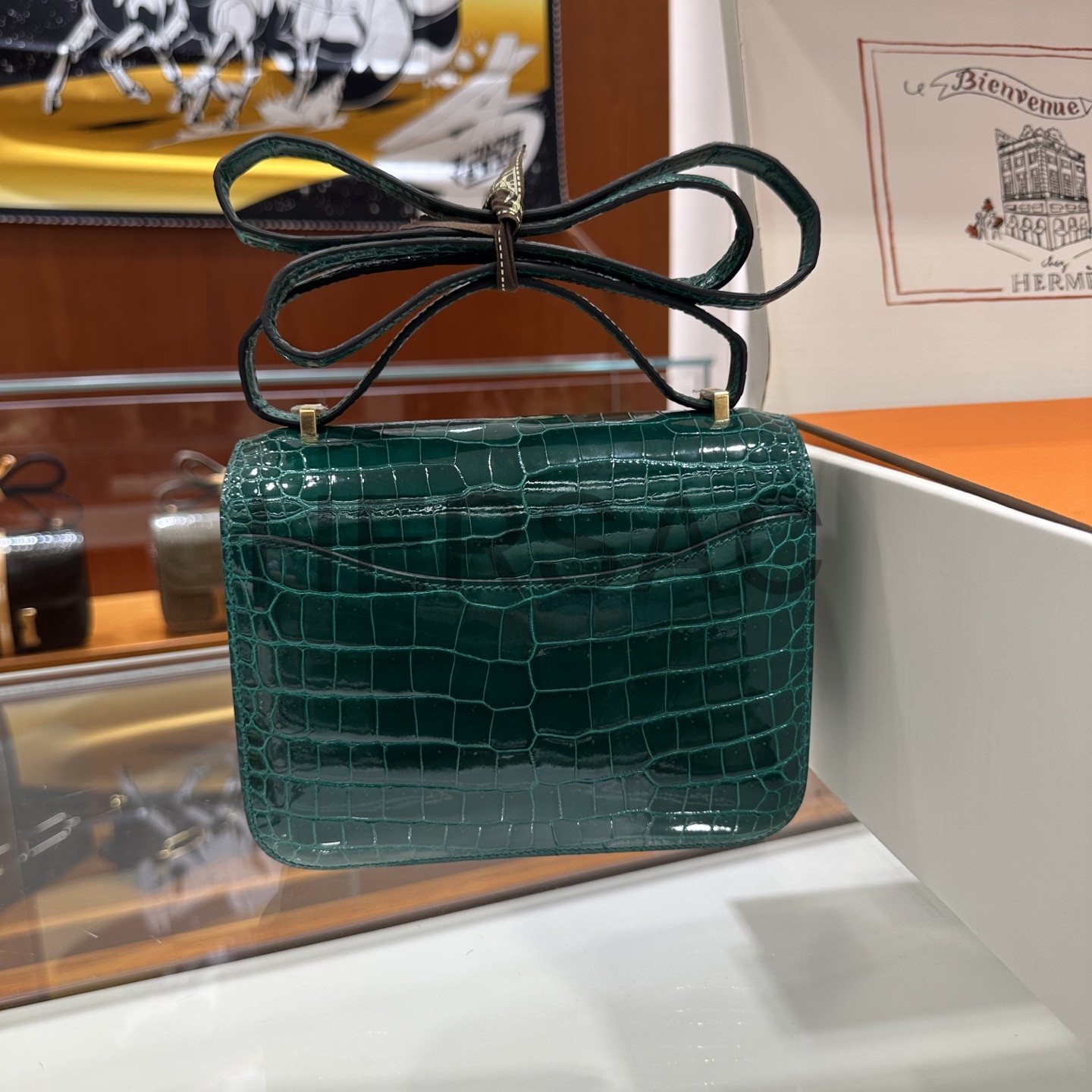 에르메스 콘스탄스 19 크로커다일/엘리게이터 버티그 에메랄드 골드