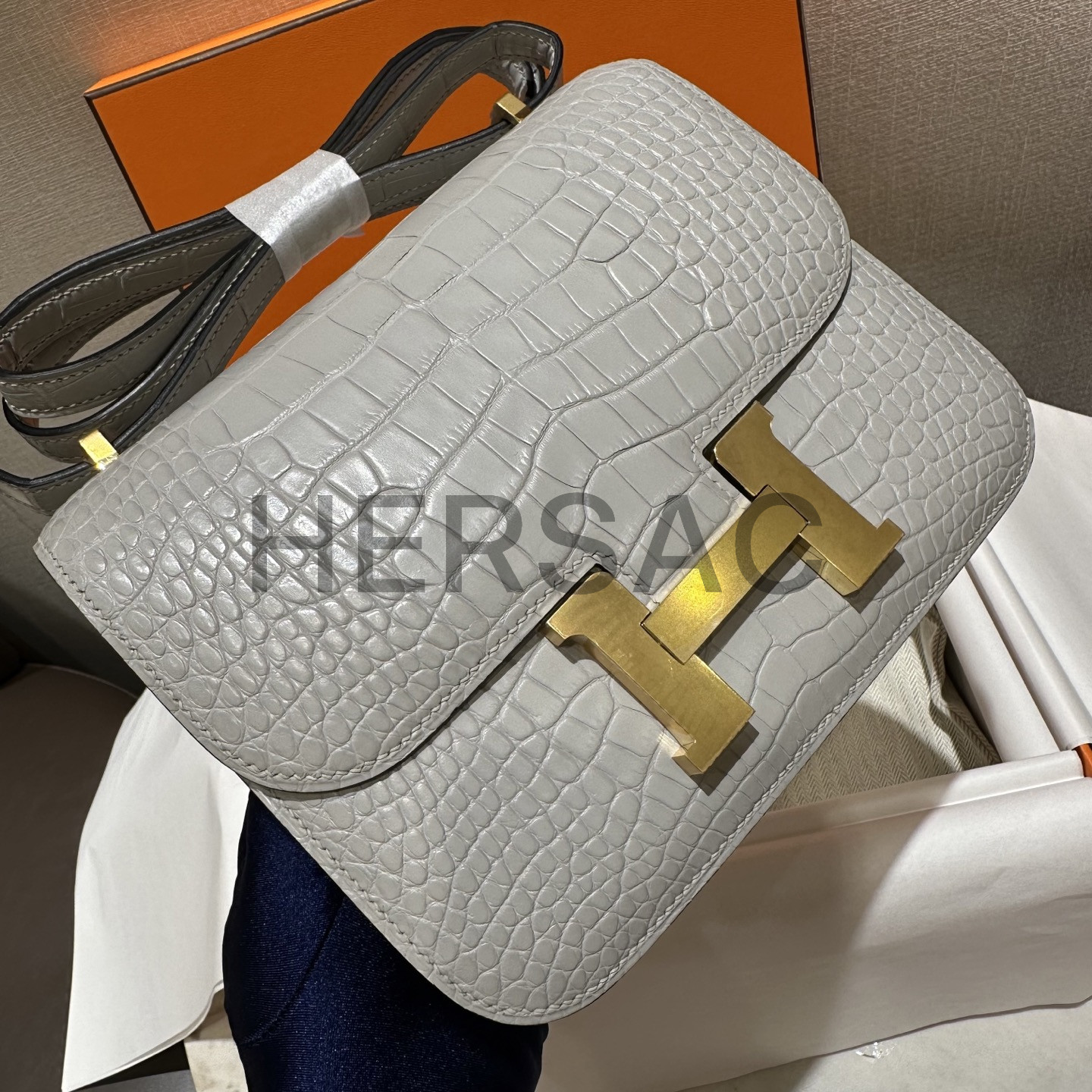 Hermes Constance 18 Alligator Gris Perle Gold > 크로스백
