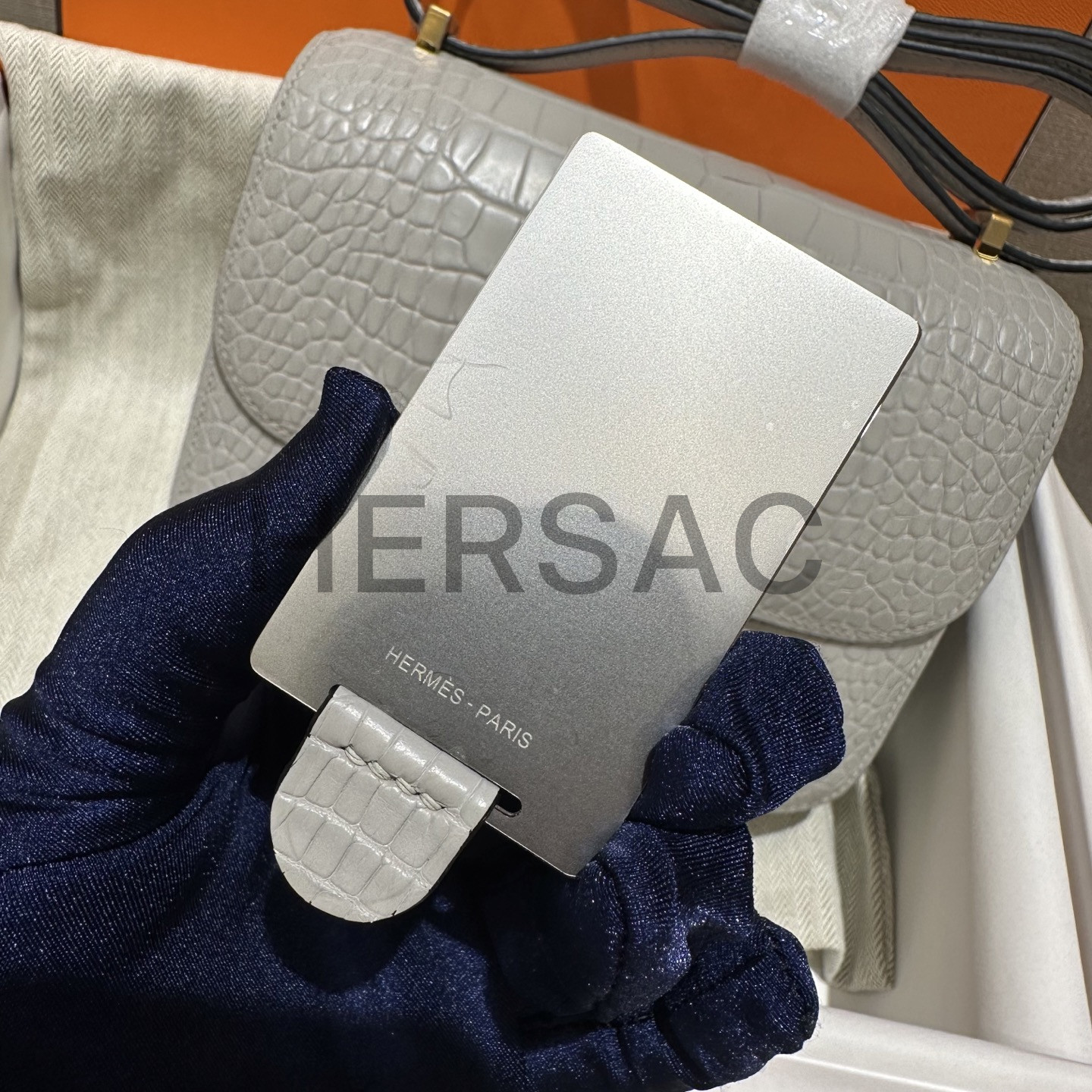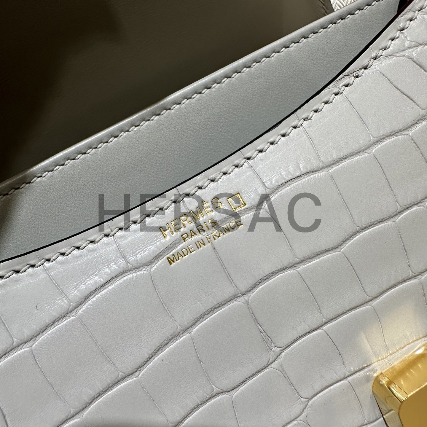 에르메스 콘스탄스 18 엘리게이터 그리스 펄 골드