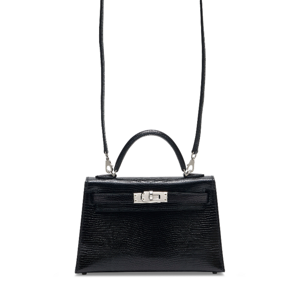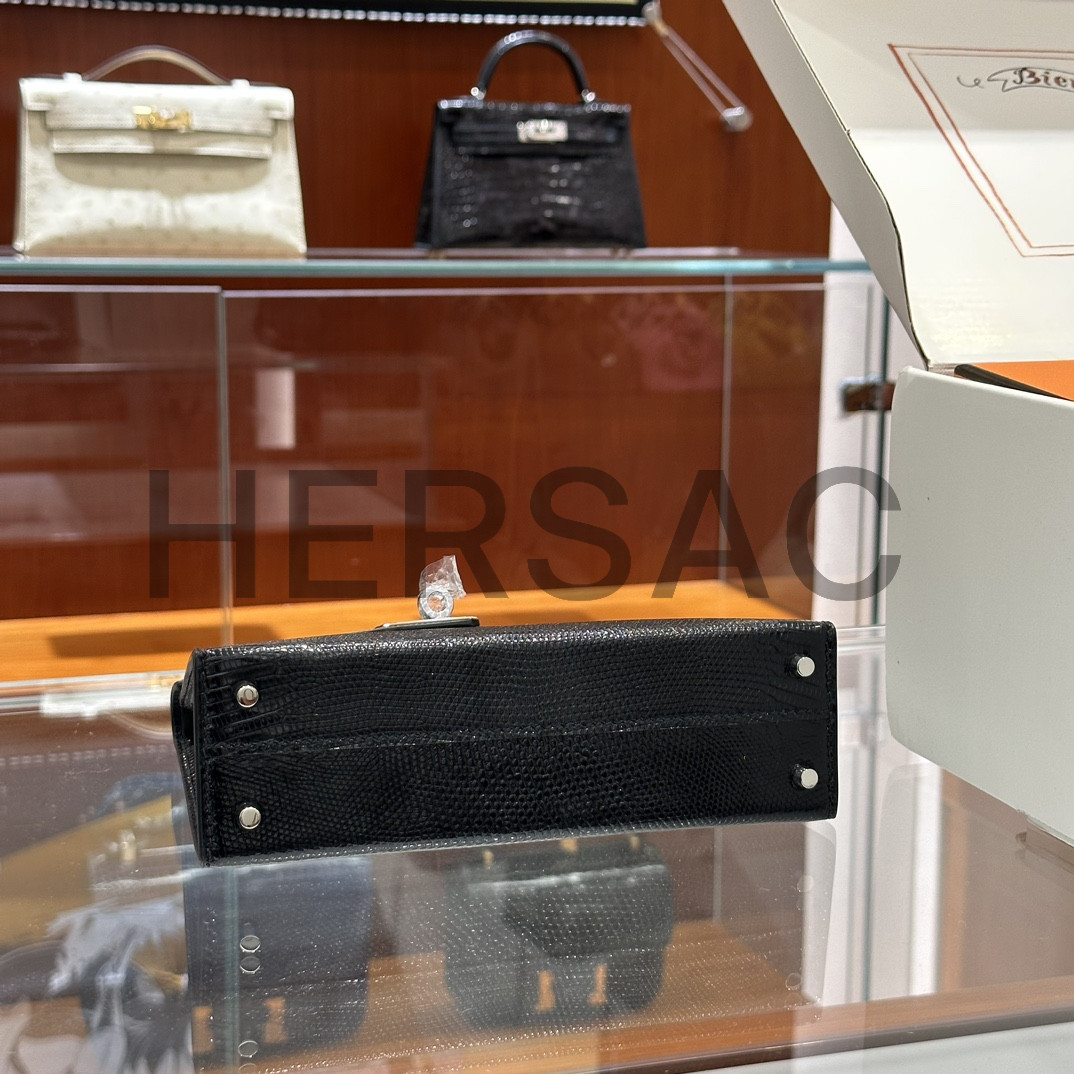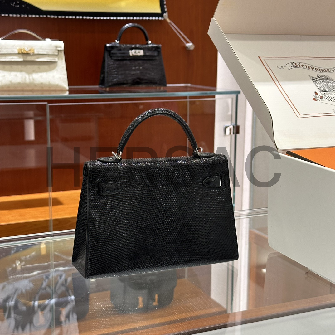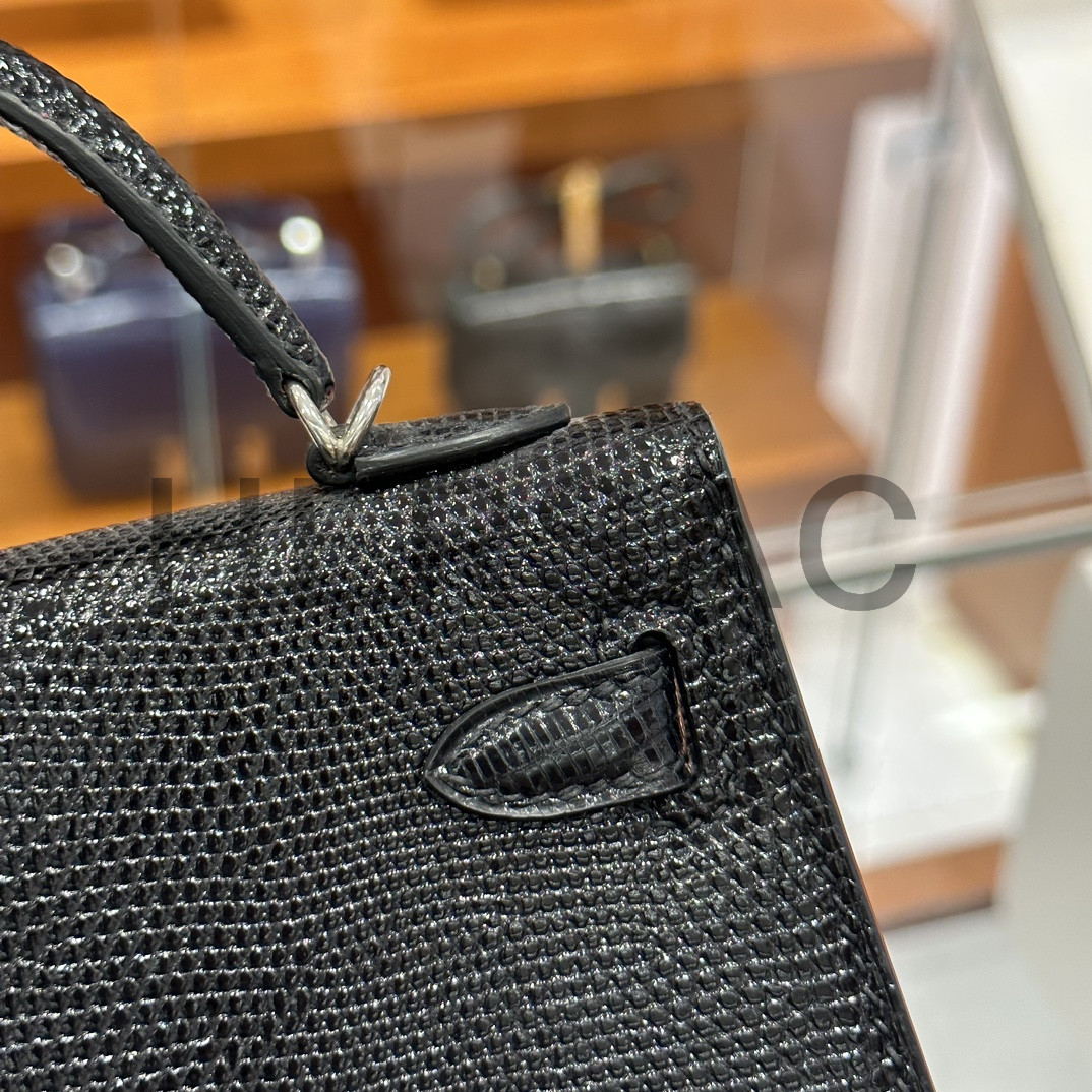 에르메스 미니 켈리 II 리자드 블랙 실버