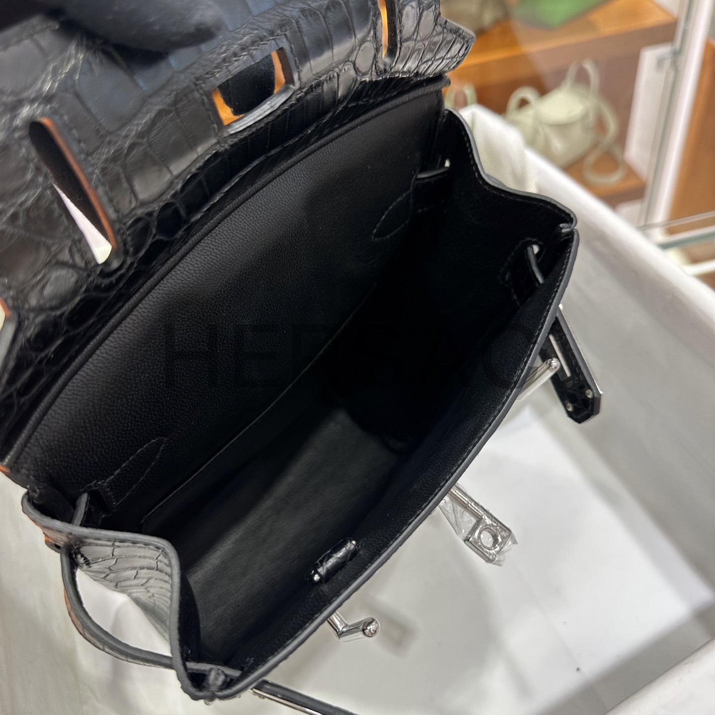 에르메스 핵 아 도 PM 엘리게이터 블랙 실버
