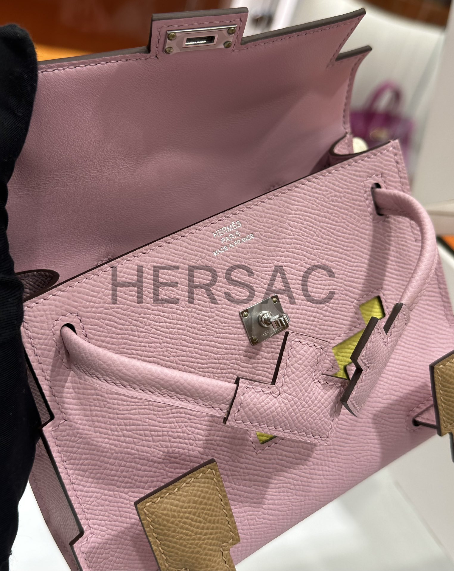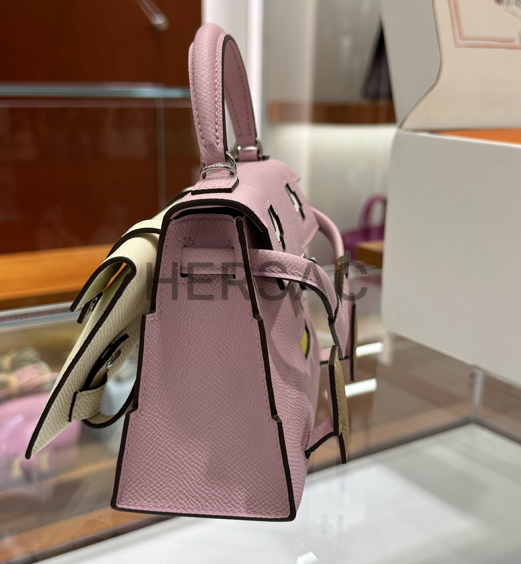 Hermes Kelly Doll Epsom Mauve Sylvestre Silver > 크로스백