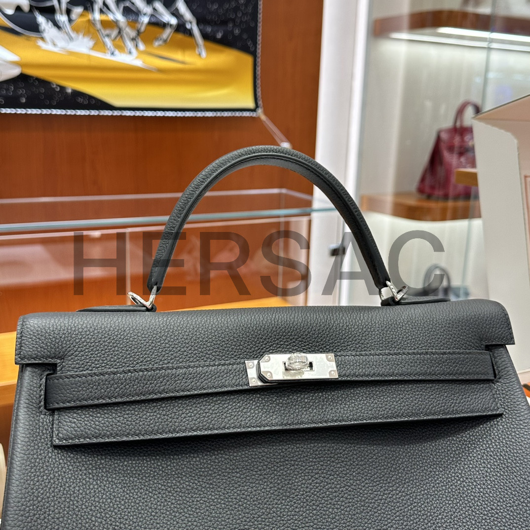 Hermes Kelly 35 Togo Noir Silver