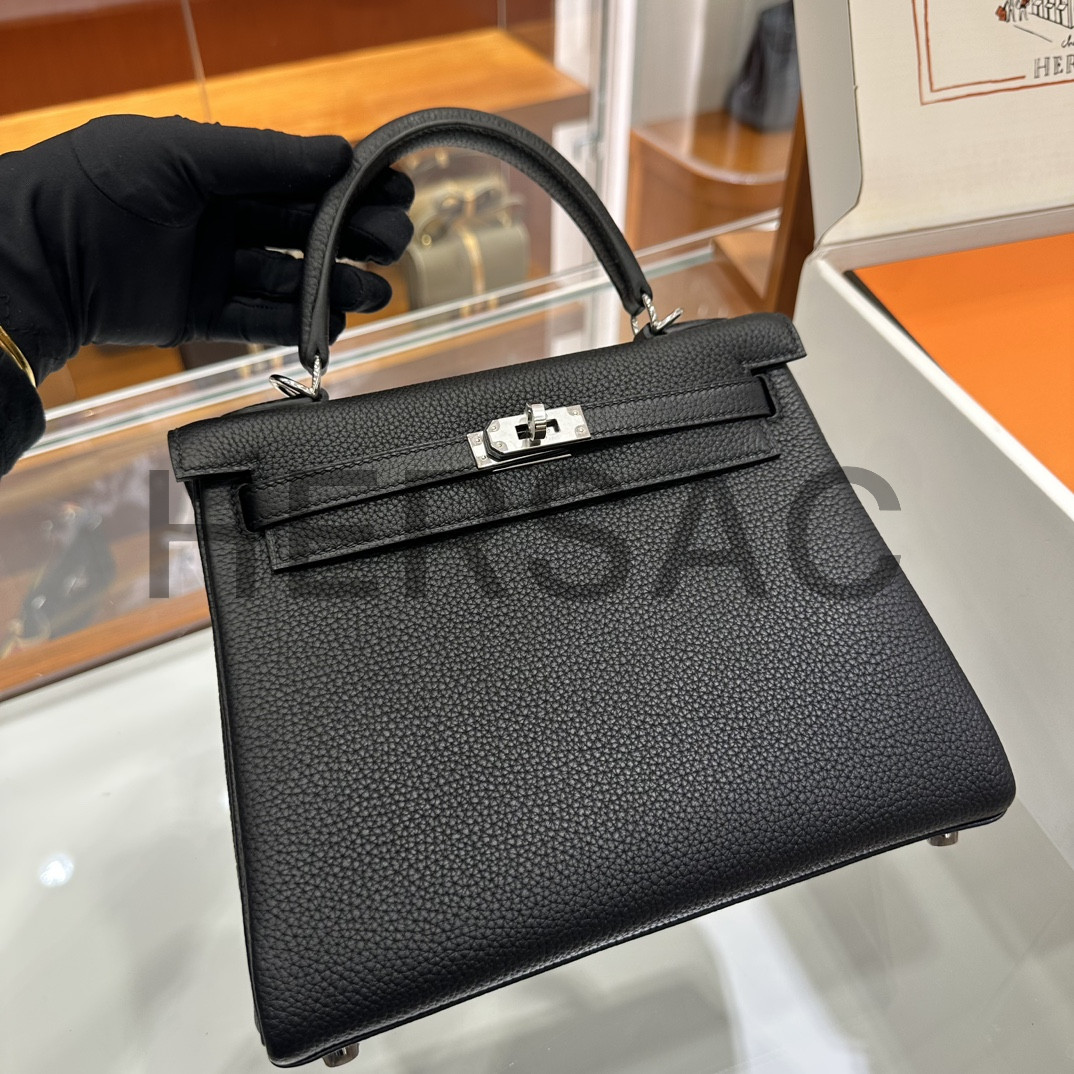 Hermes Kelly 25 Togo Noir Silver