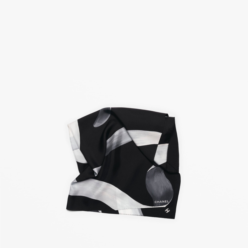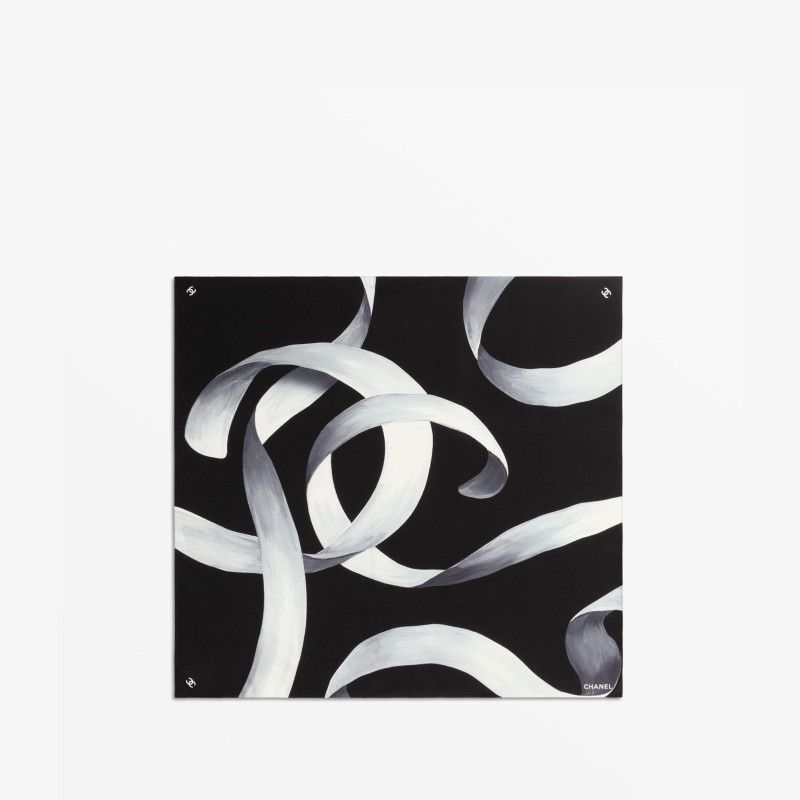 샤넬 스퀘어 스카프 실크 트윌 블랙 화이트 그레이 AAB472-B22297-U4573