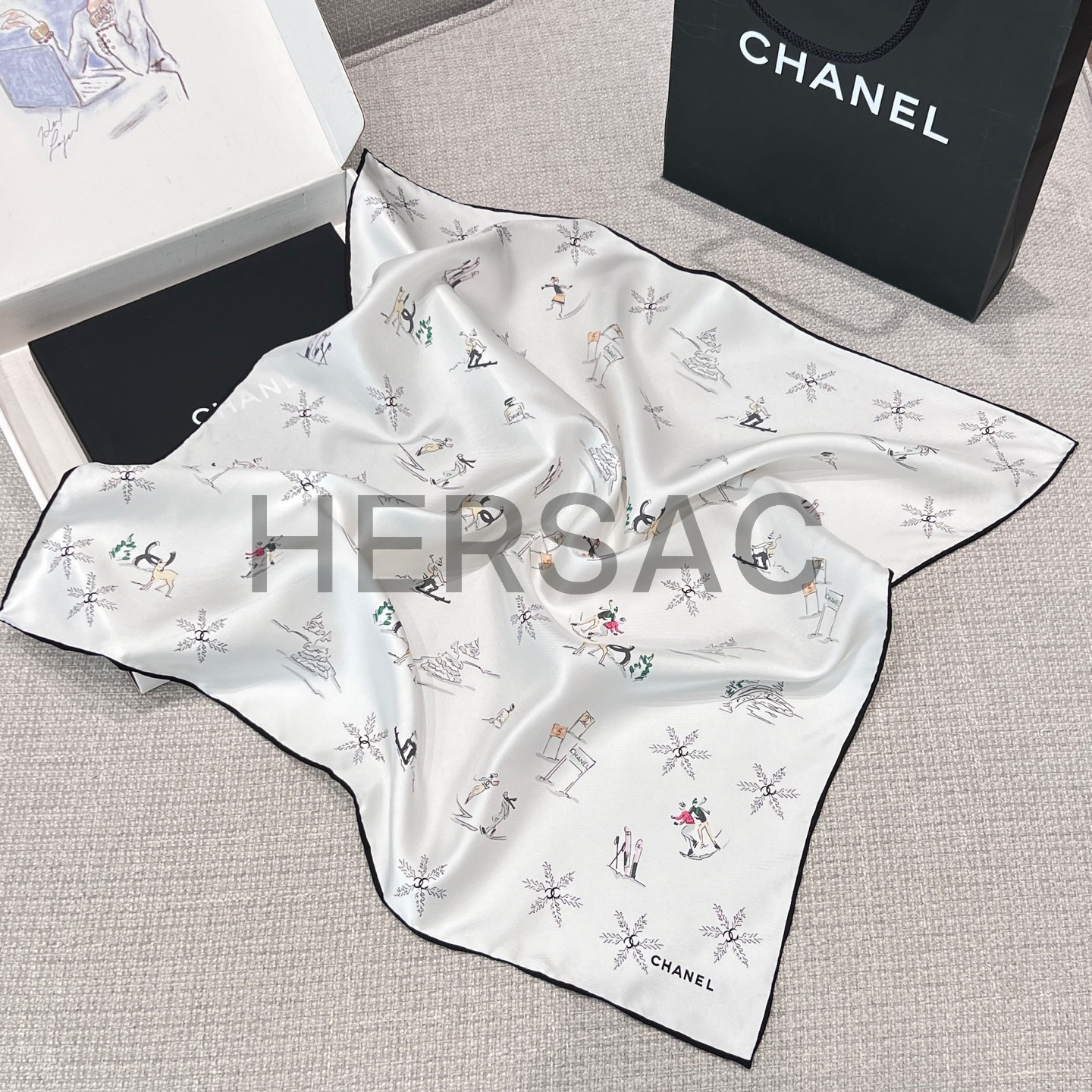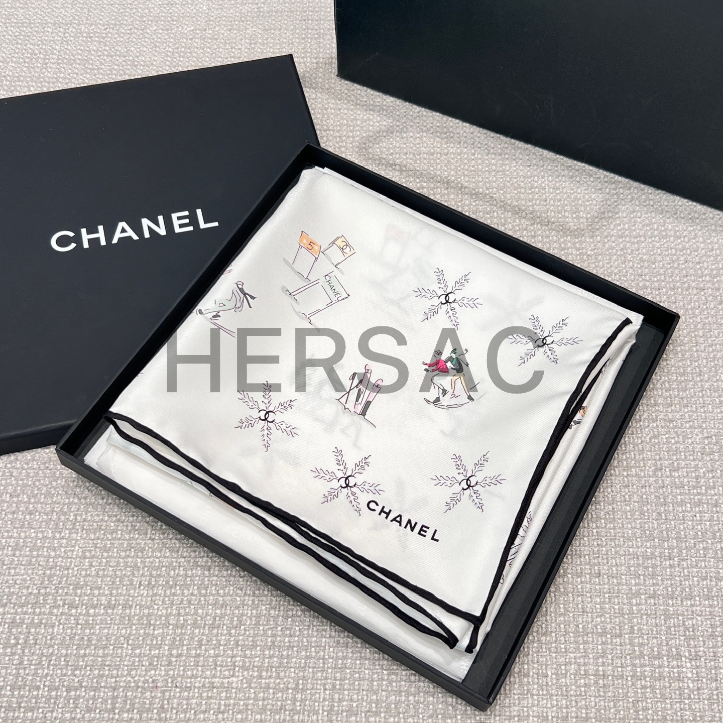 샤넬 2025/26 코코 네쥬 컬렉션밴다나 실크 트윌 에크루 멀티컬러 블랙 AAB285-B21514-U2898
