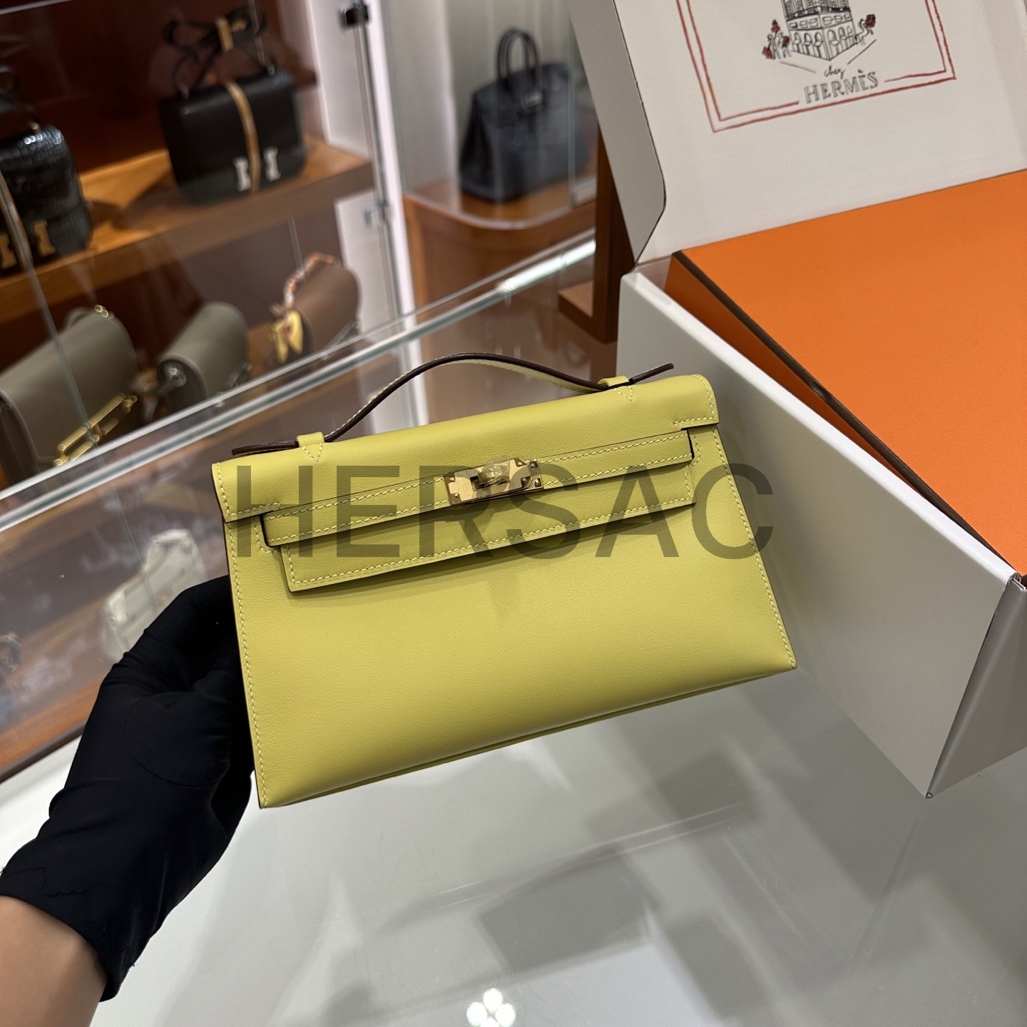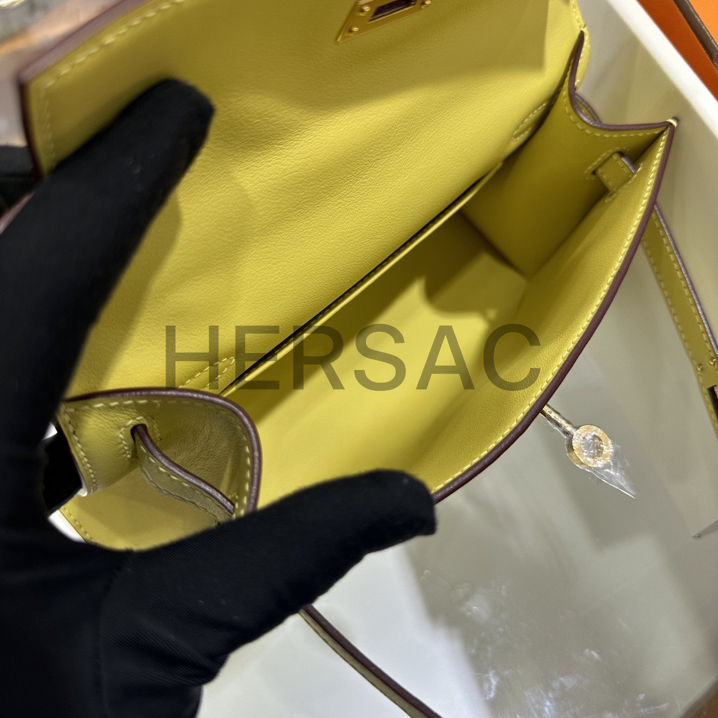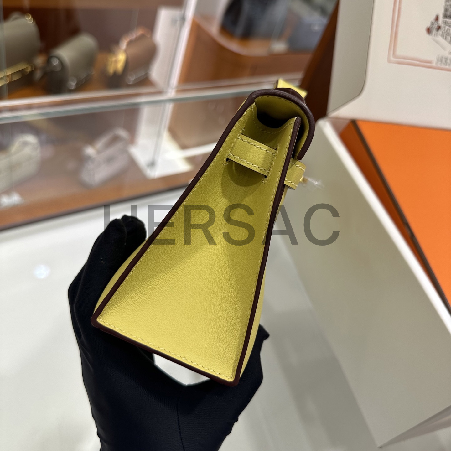 에르메스 미니 켈리 I 스위프트 라임 골드
