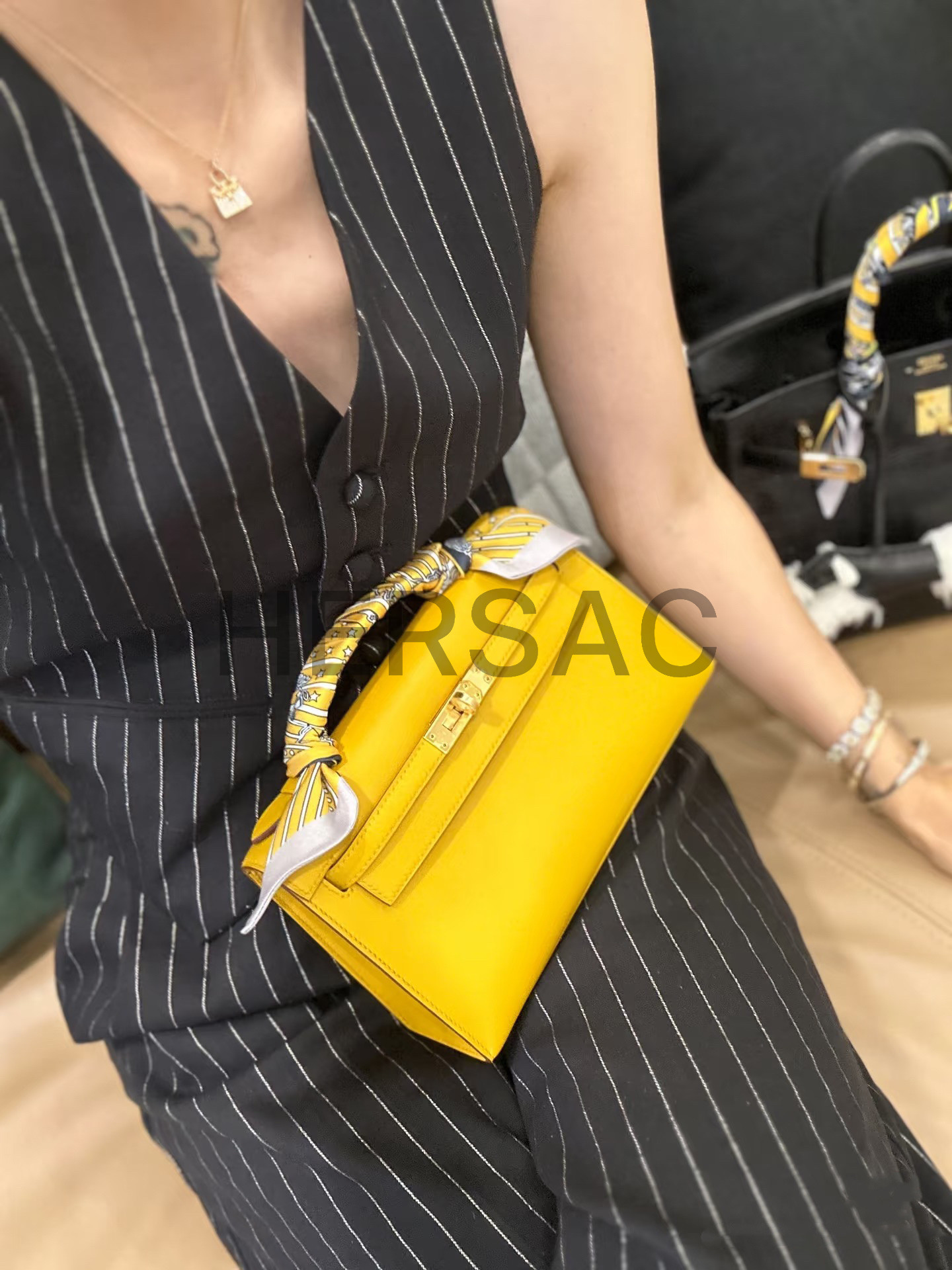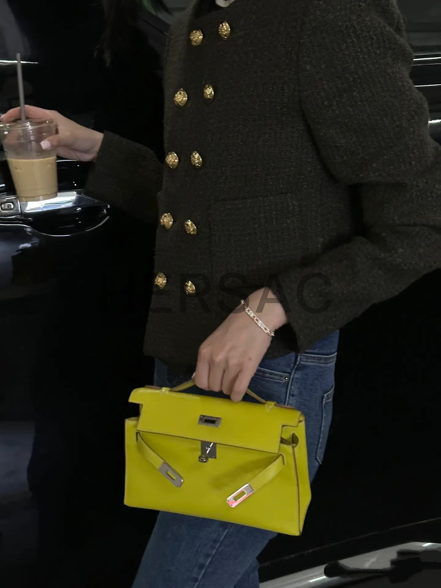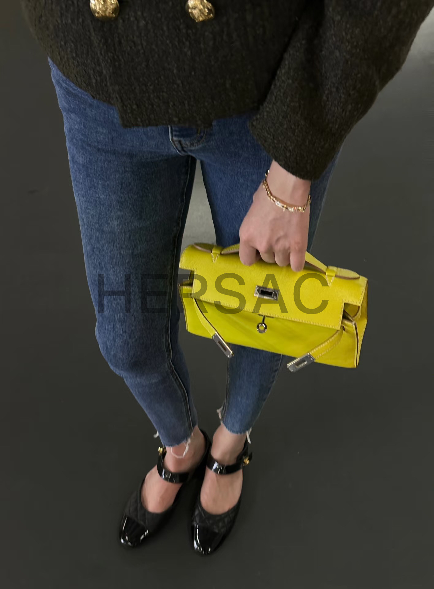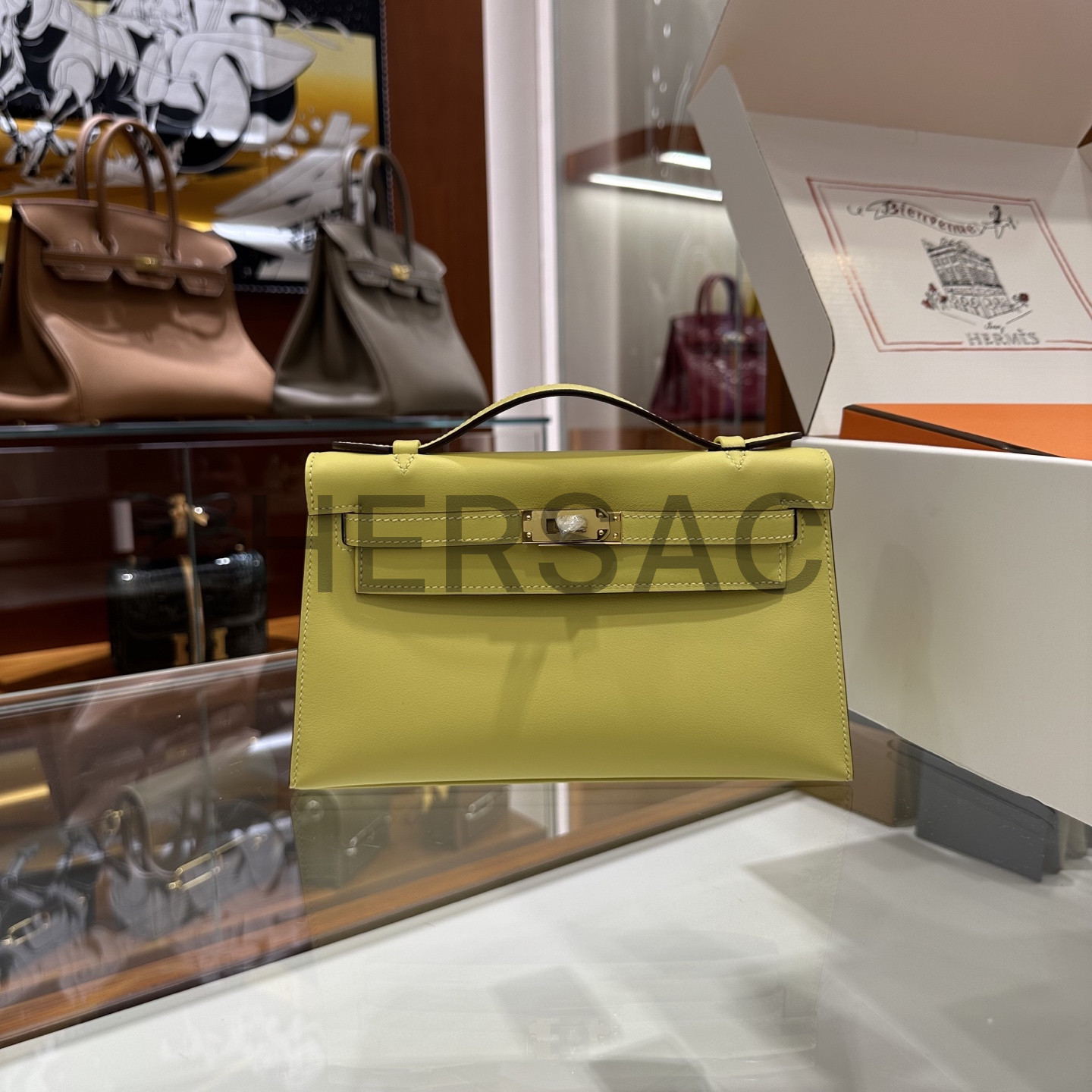 에르메스 미니 켈리 I 스위프트 라임 골드