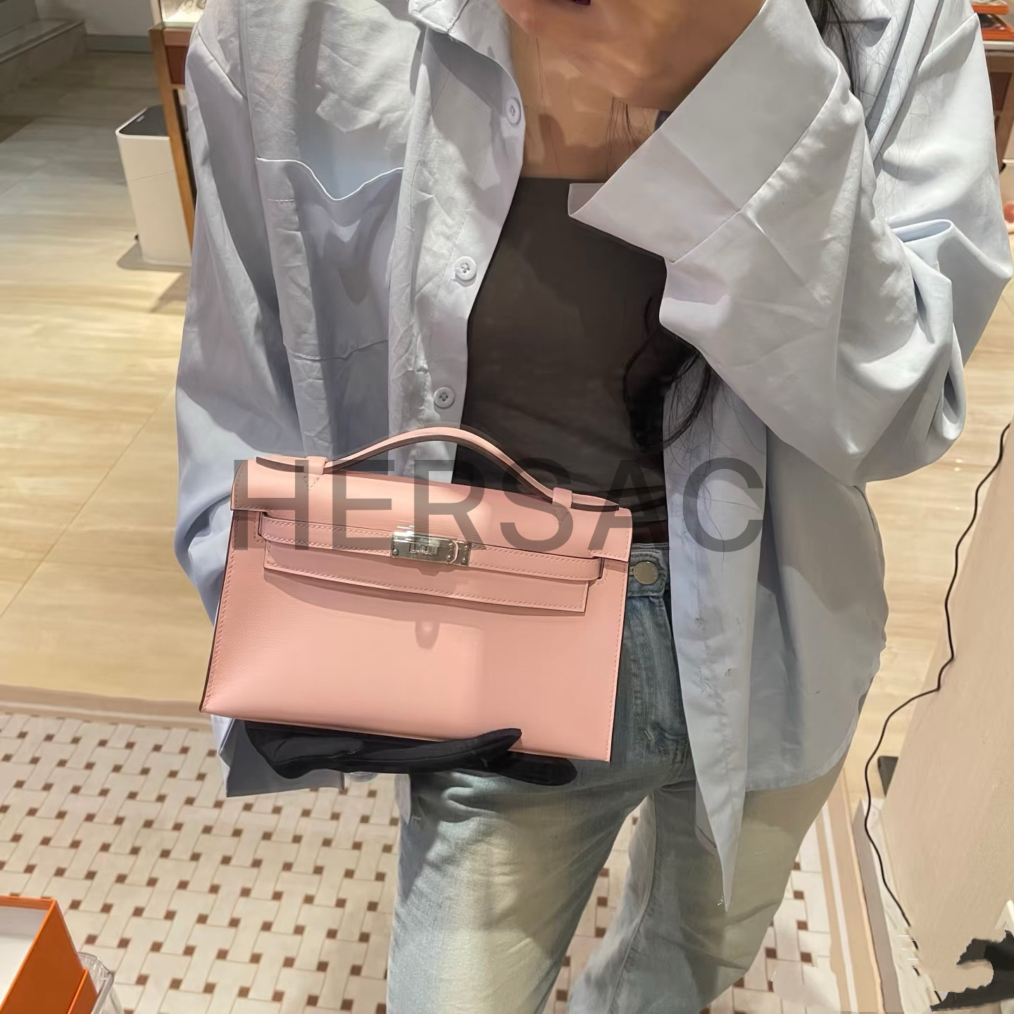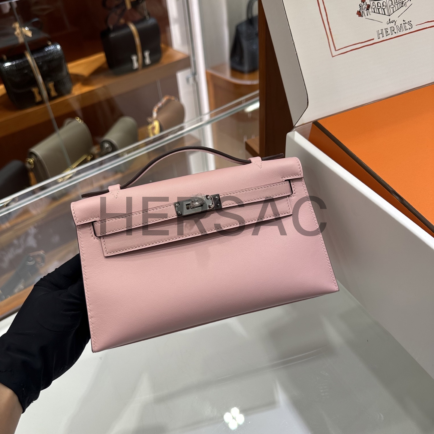 에르메스 미니 켈리 I 스위프트 로즈 사쿠라 골드 H049417CK3Q