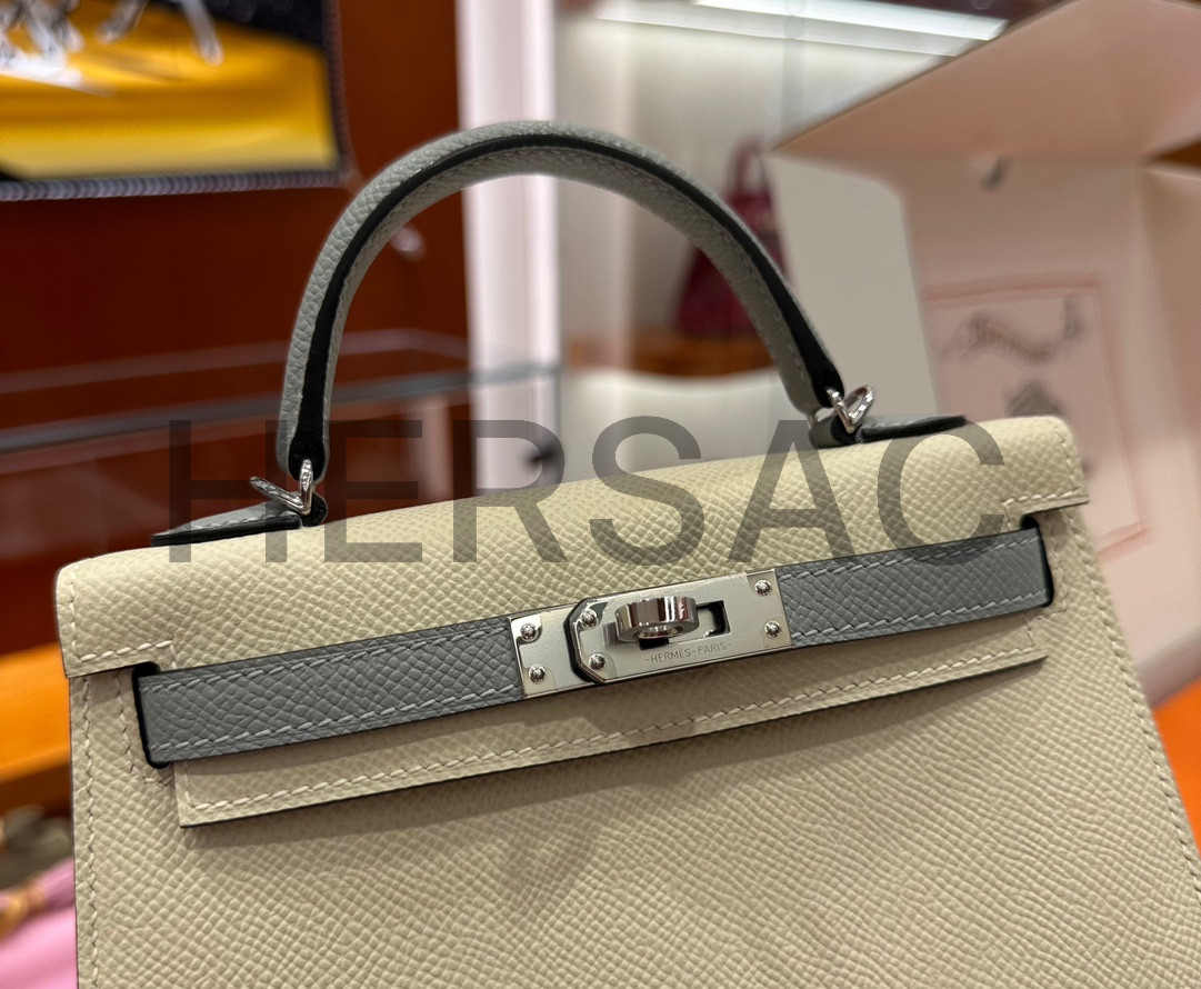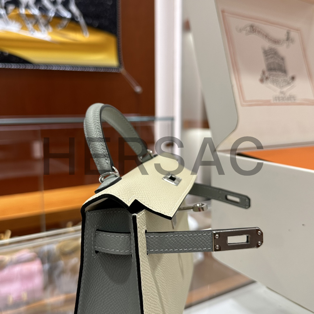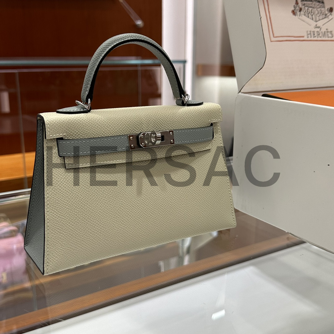 Hermes Kelly II Mini Epsom Craie Bleu Glacier Silver > 토트백