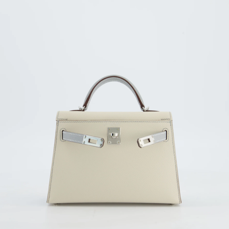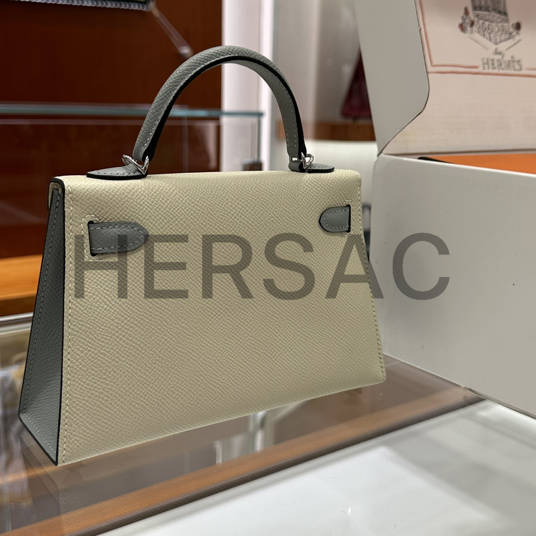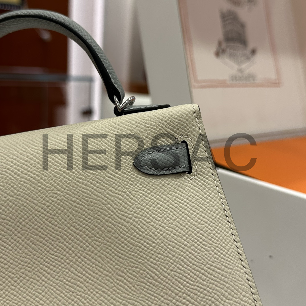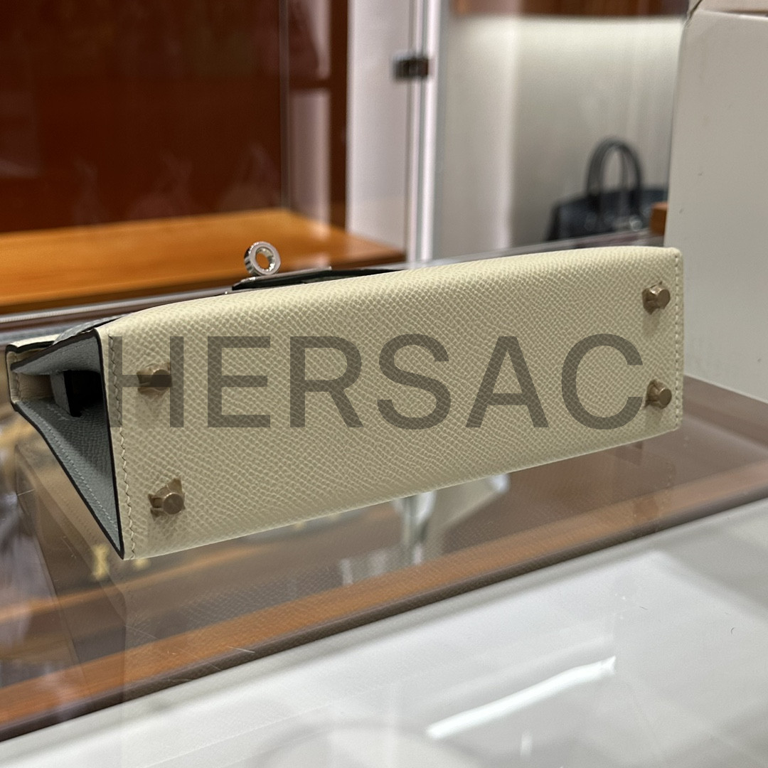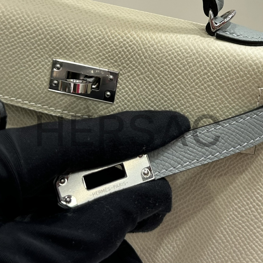 Hermes Kelly II Mini Epsom Craie Bleu Glacier Silver