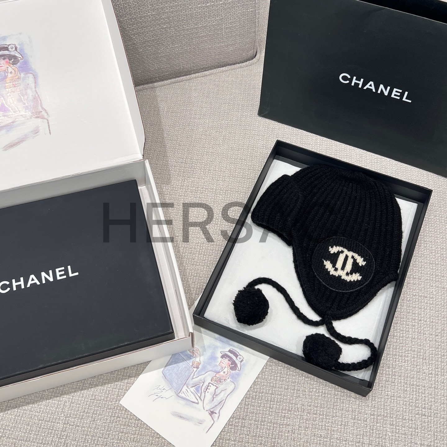 샤넬 2025/26 가을-겨울 프리-컬렉션 비니 캐시미어 블랙 에크루 모자 AAB271-B21482-U2779