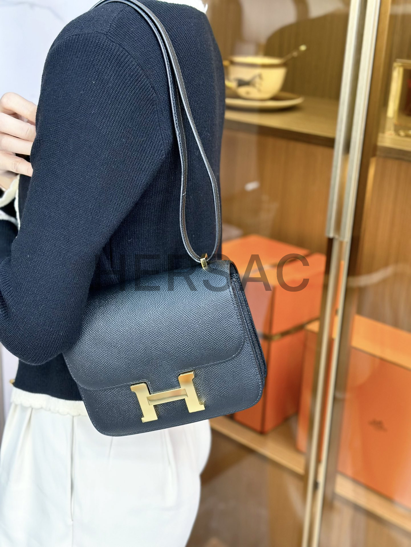 에르메스 콘스탄스 19 앱송 블랙 골드 H056347CC89