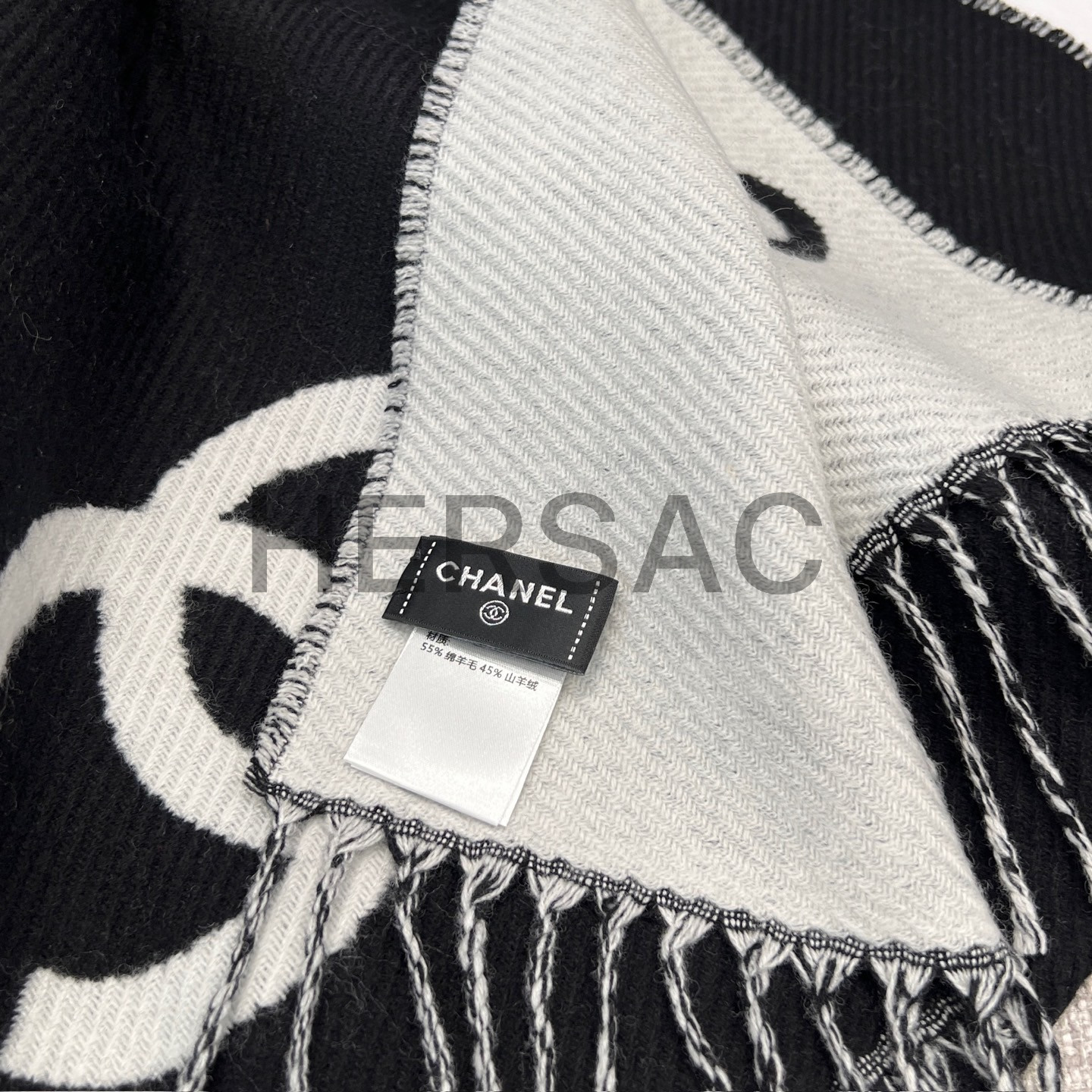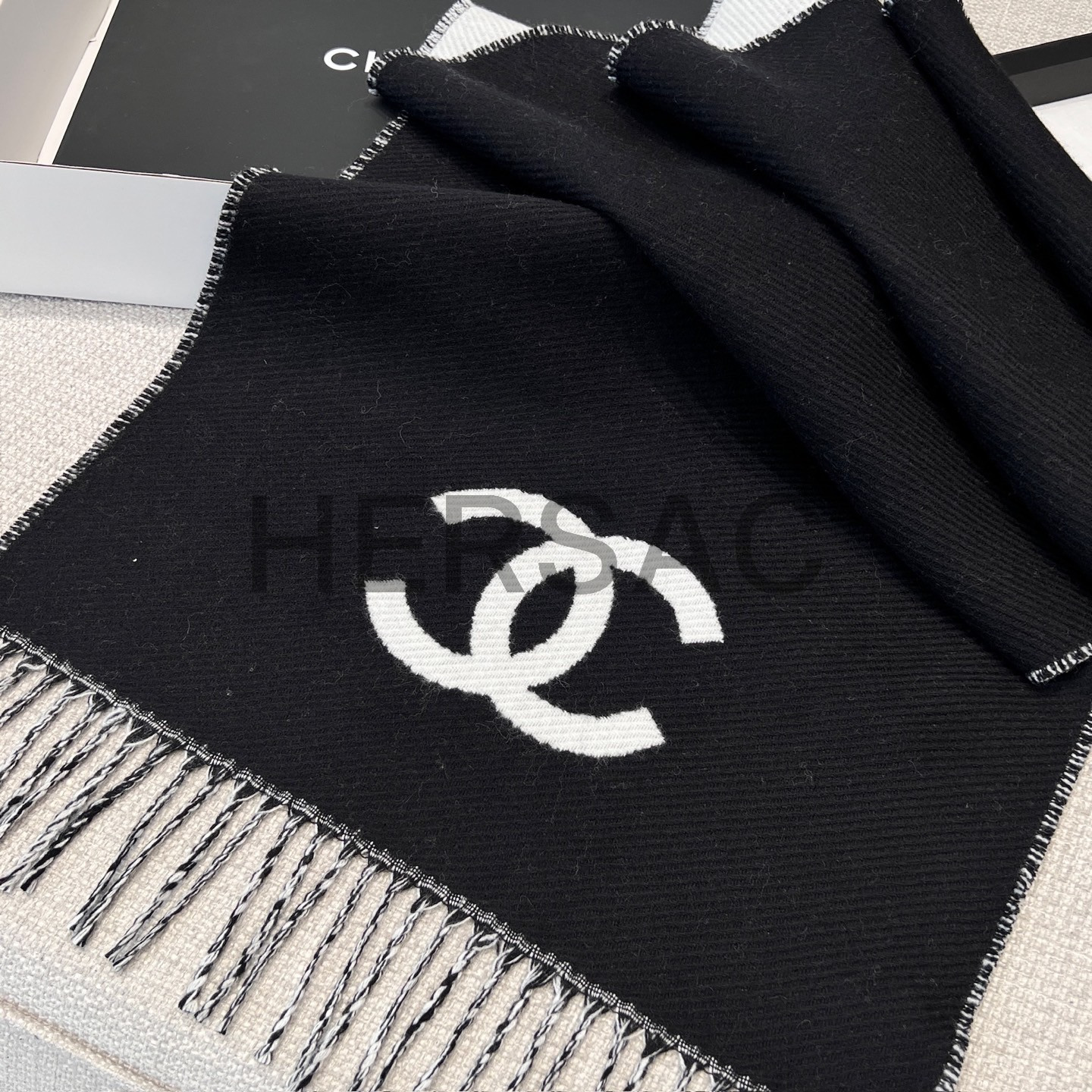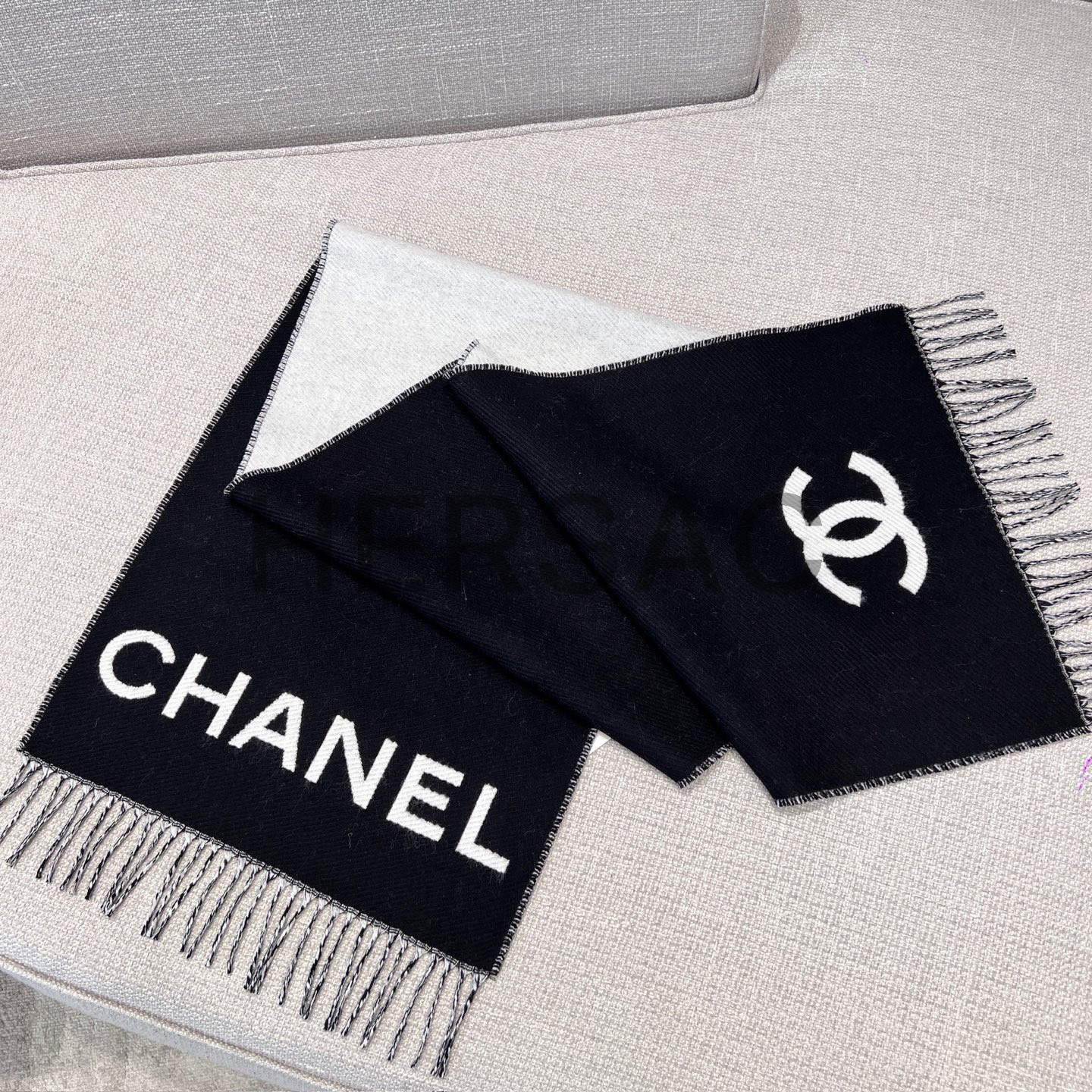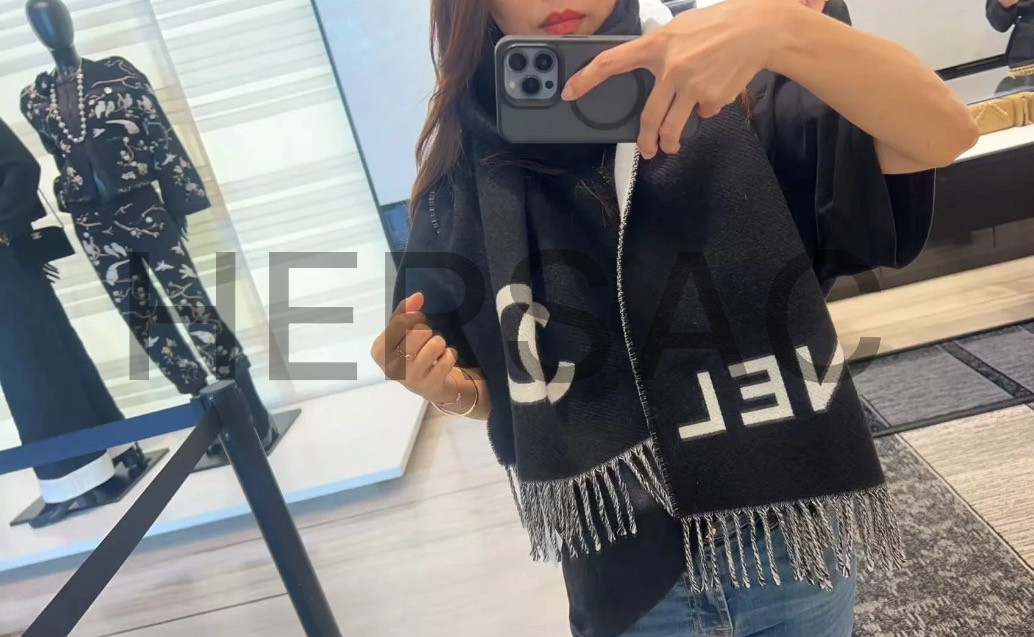샤넬 CC 로고 프린지 트림 울과 캐시미어 플리스 스카프 AAB010-B20409-U0682