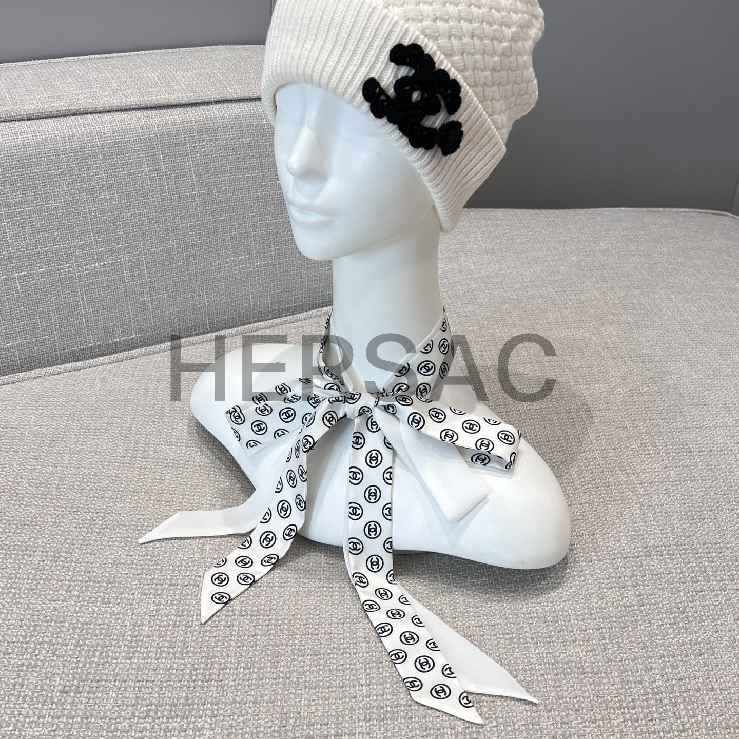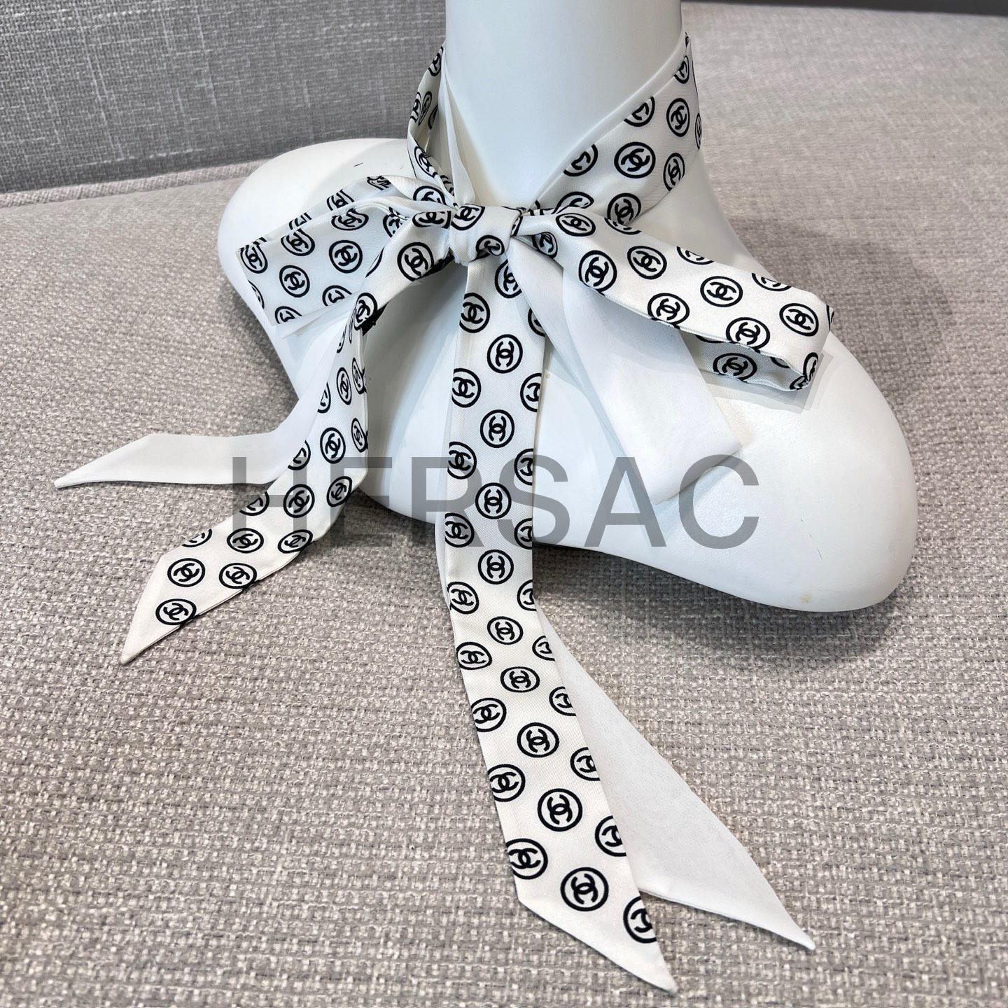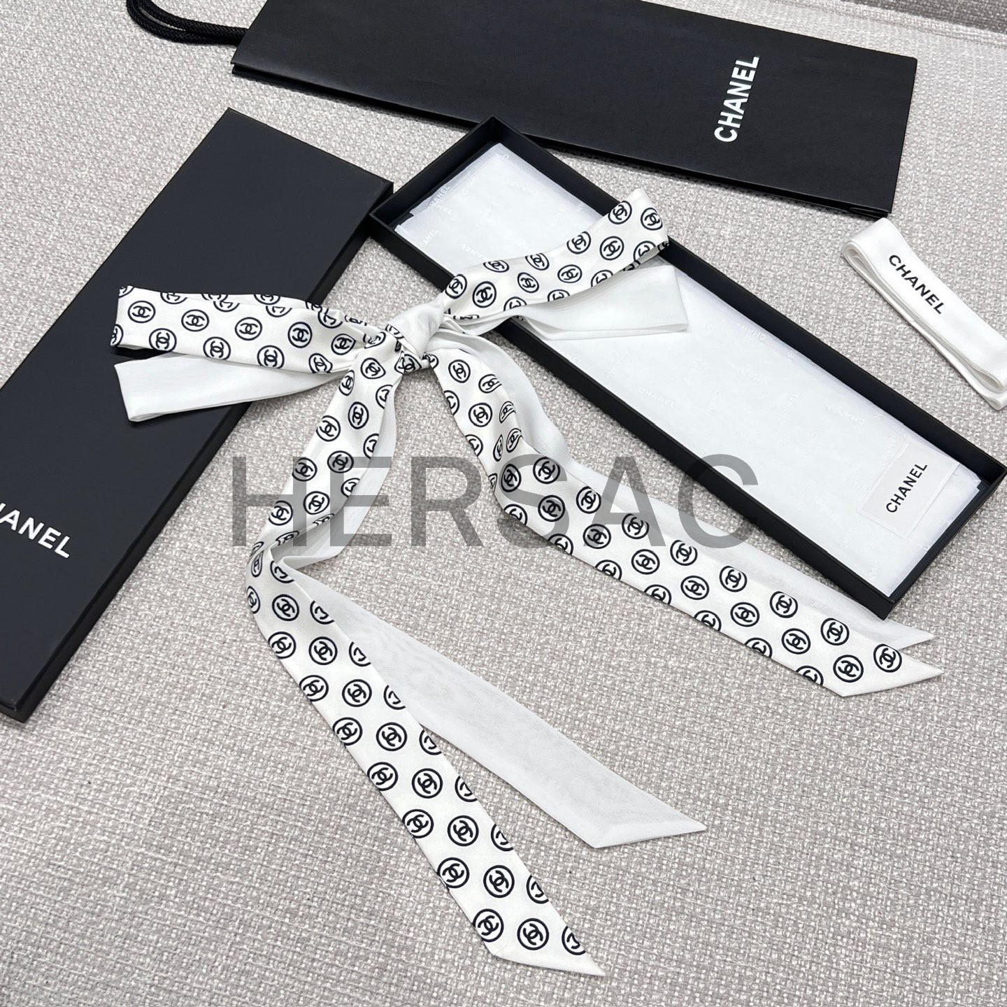 샤넬 2025/26가을-겨울 헤어밴드 실크 트윌 화이트 블랙 AAB535-B22430-U4551
