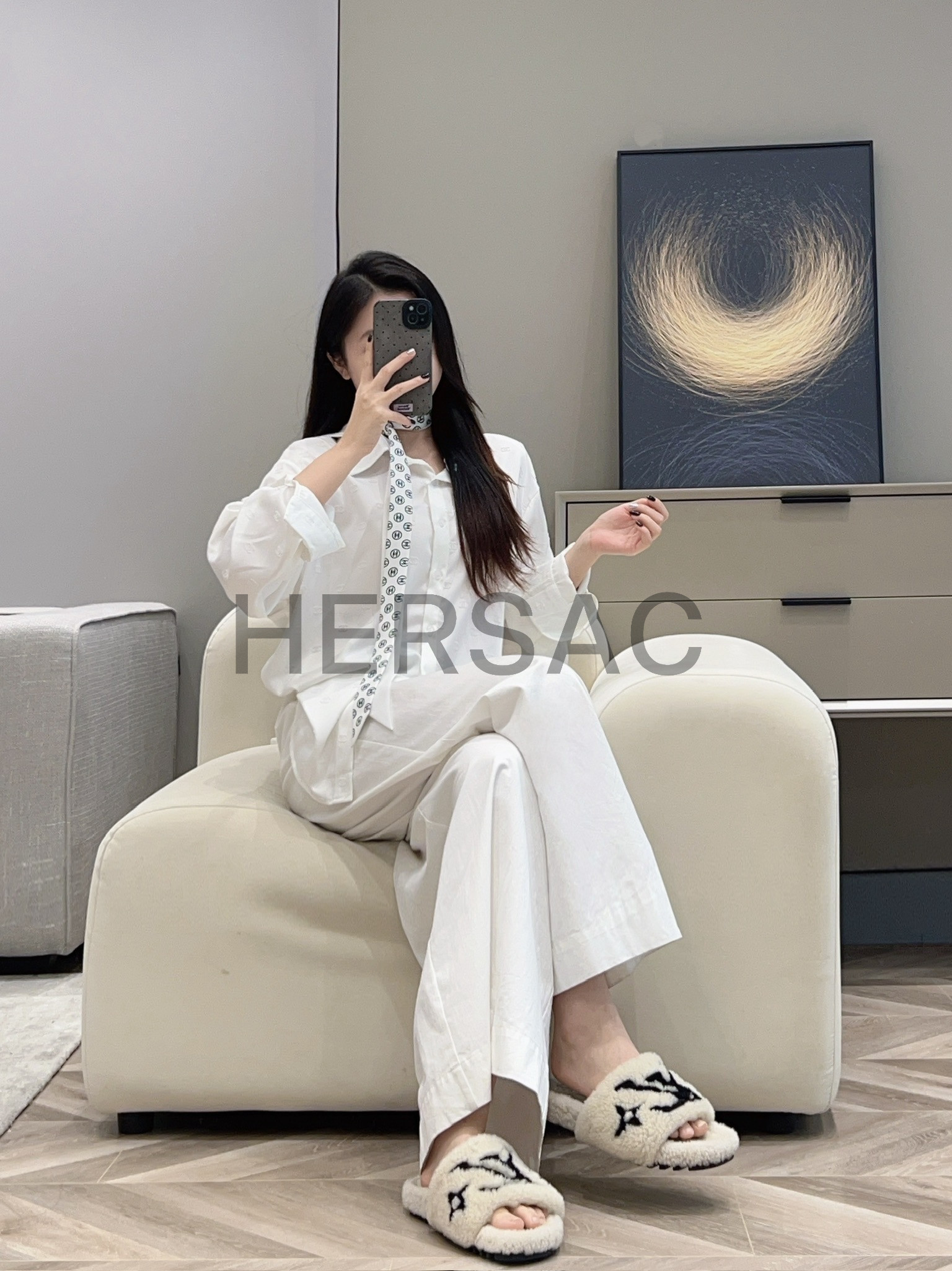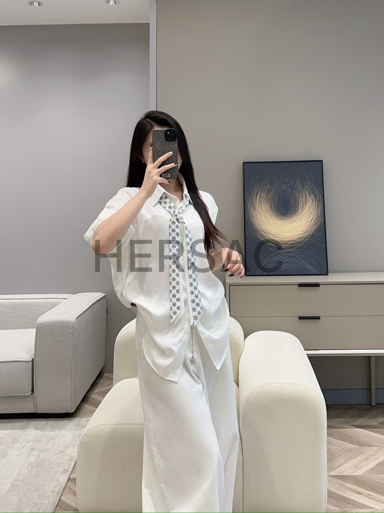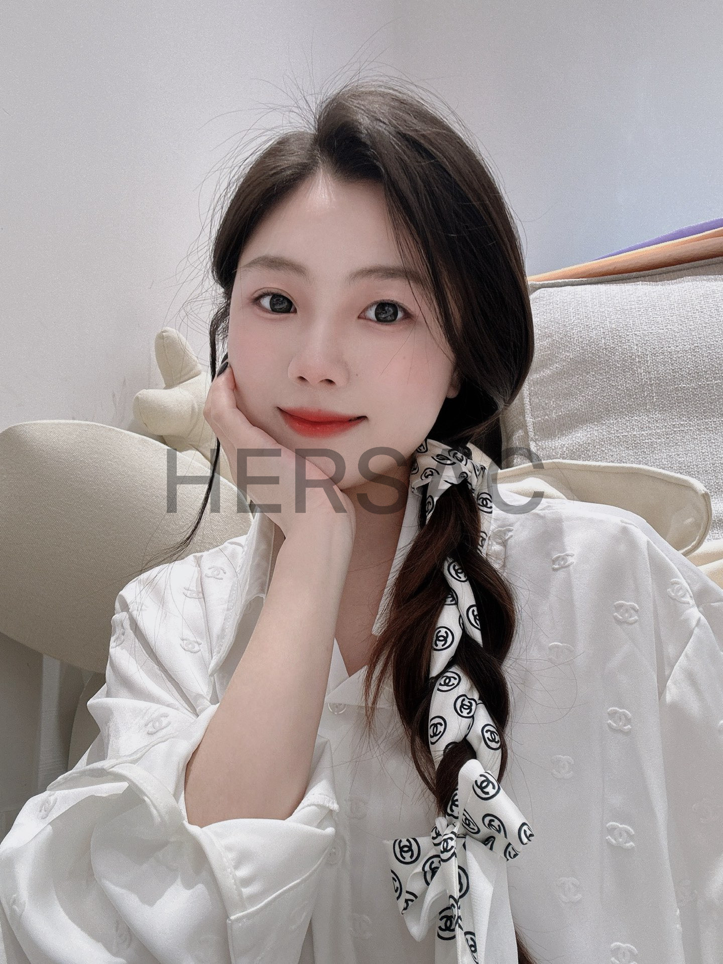 샤넬 2025/26가을-겨울 헤어밴드 실크 트윌 화이트 블랙 AAB535-B22430-U4551