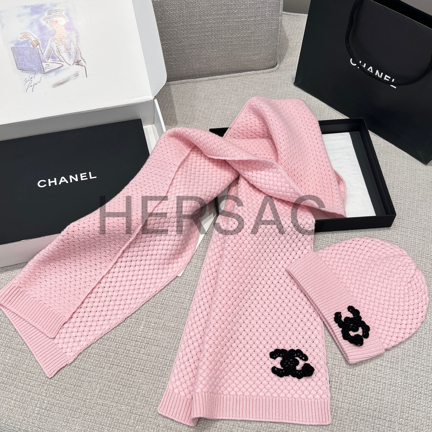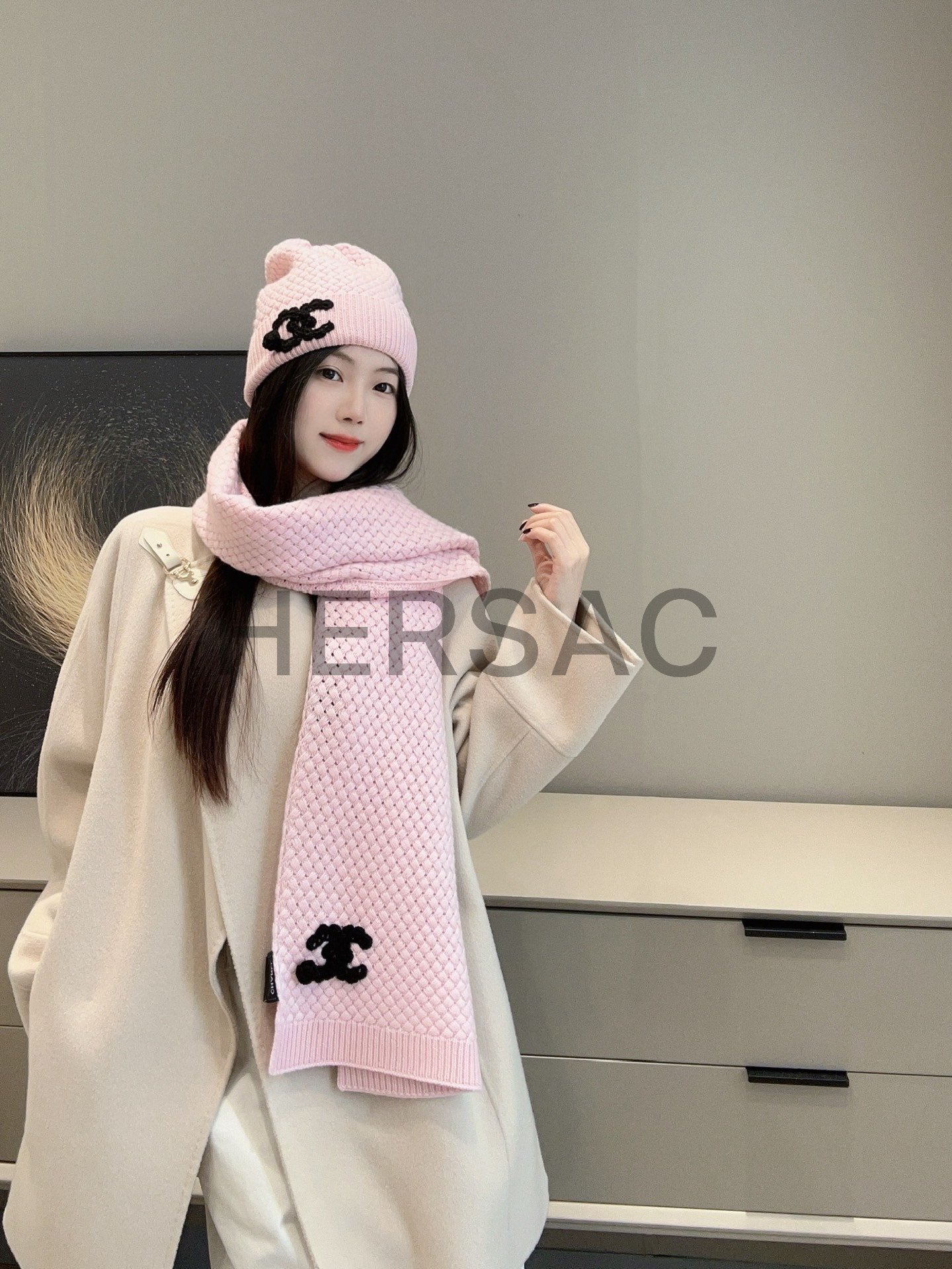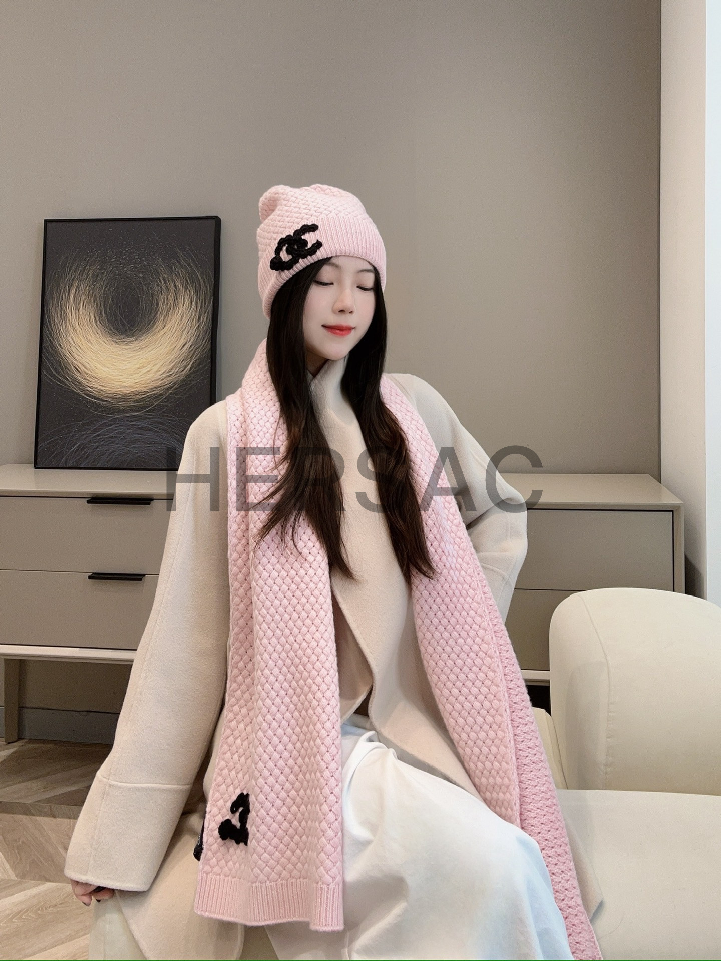 샤넬 25FW 캐시미어 CC로고 까멜리아 니트 스카프 AAB132 B20782 U0018