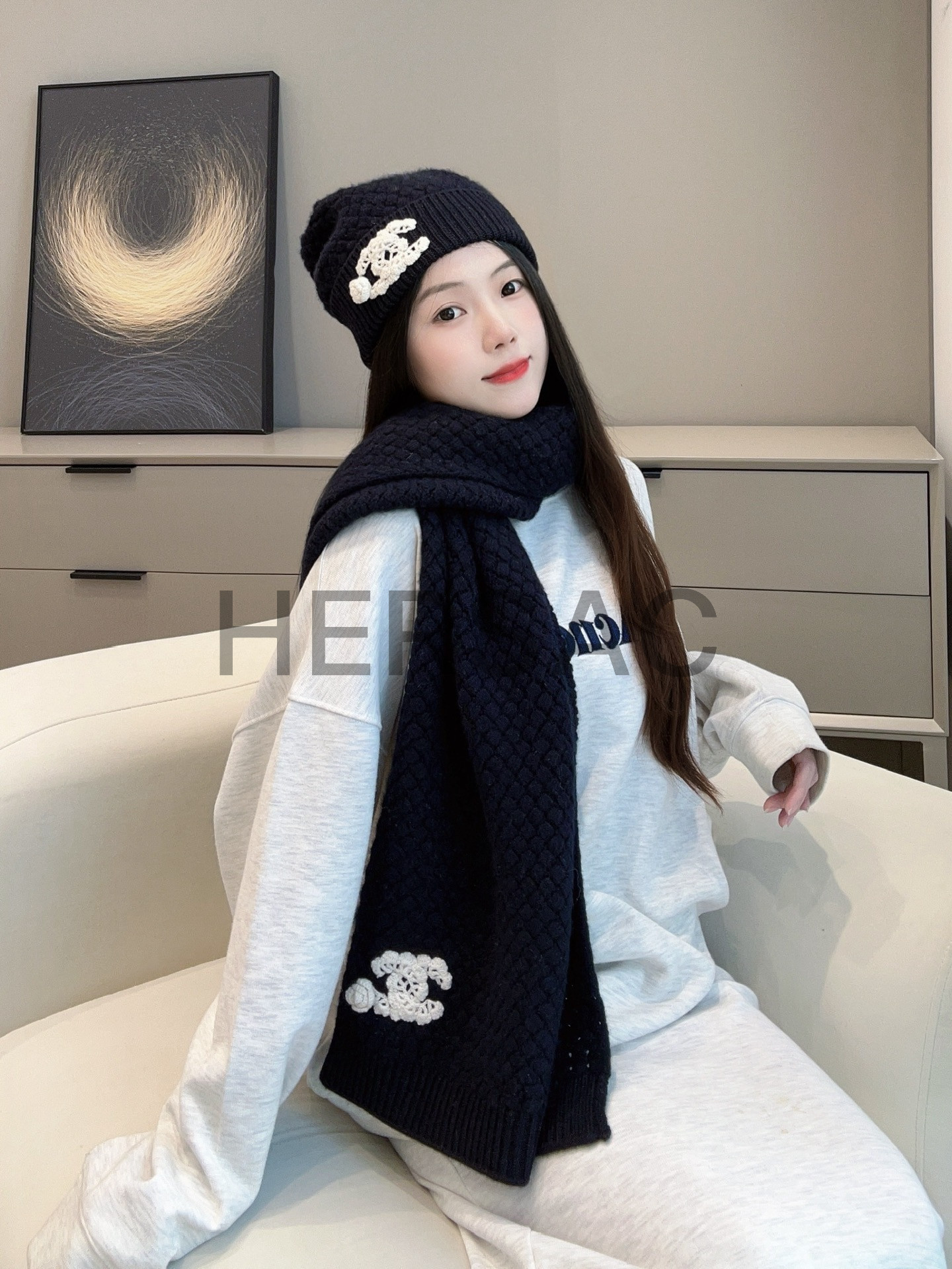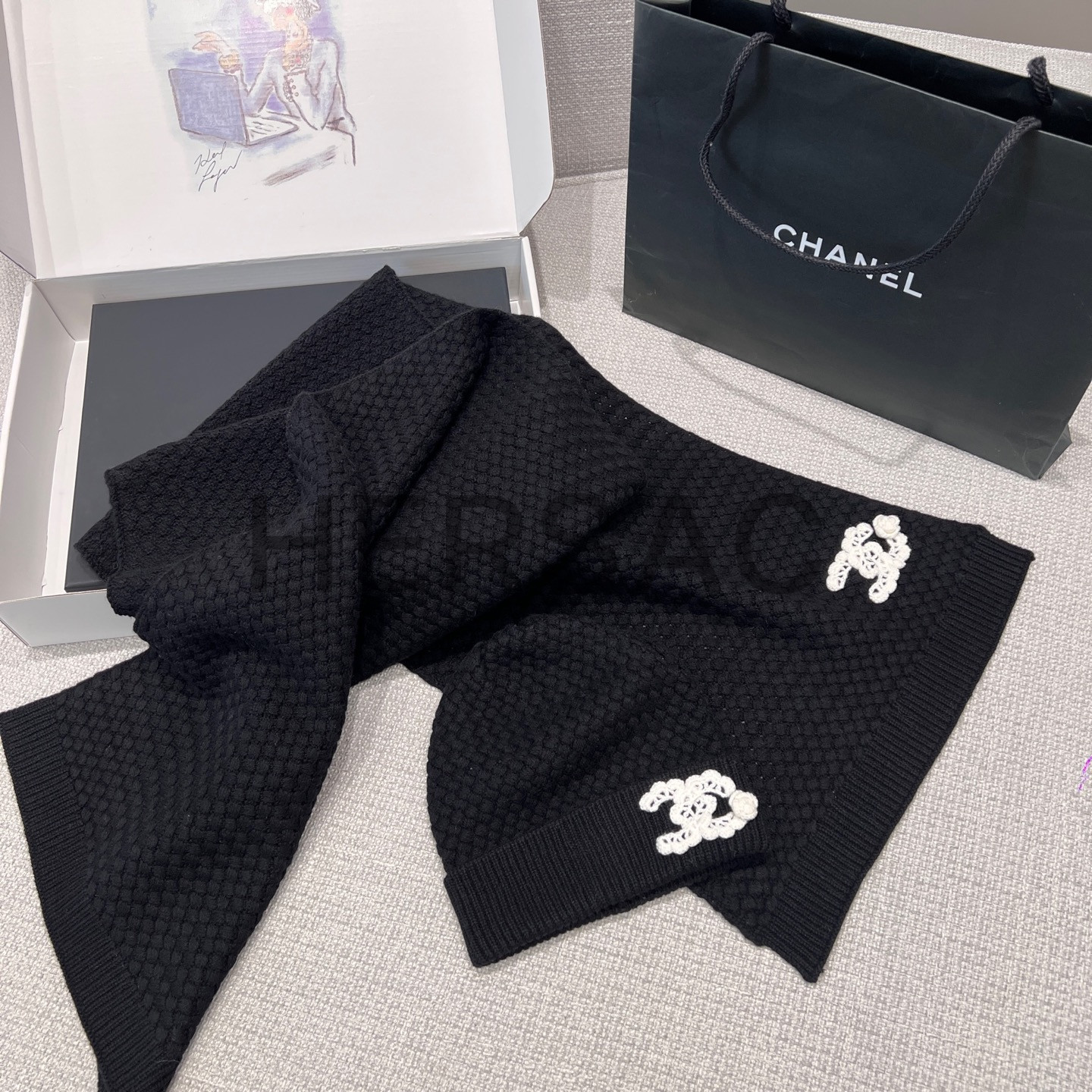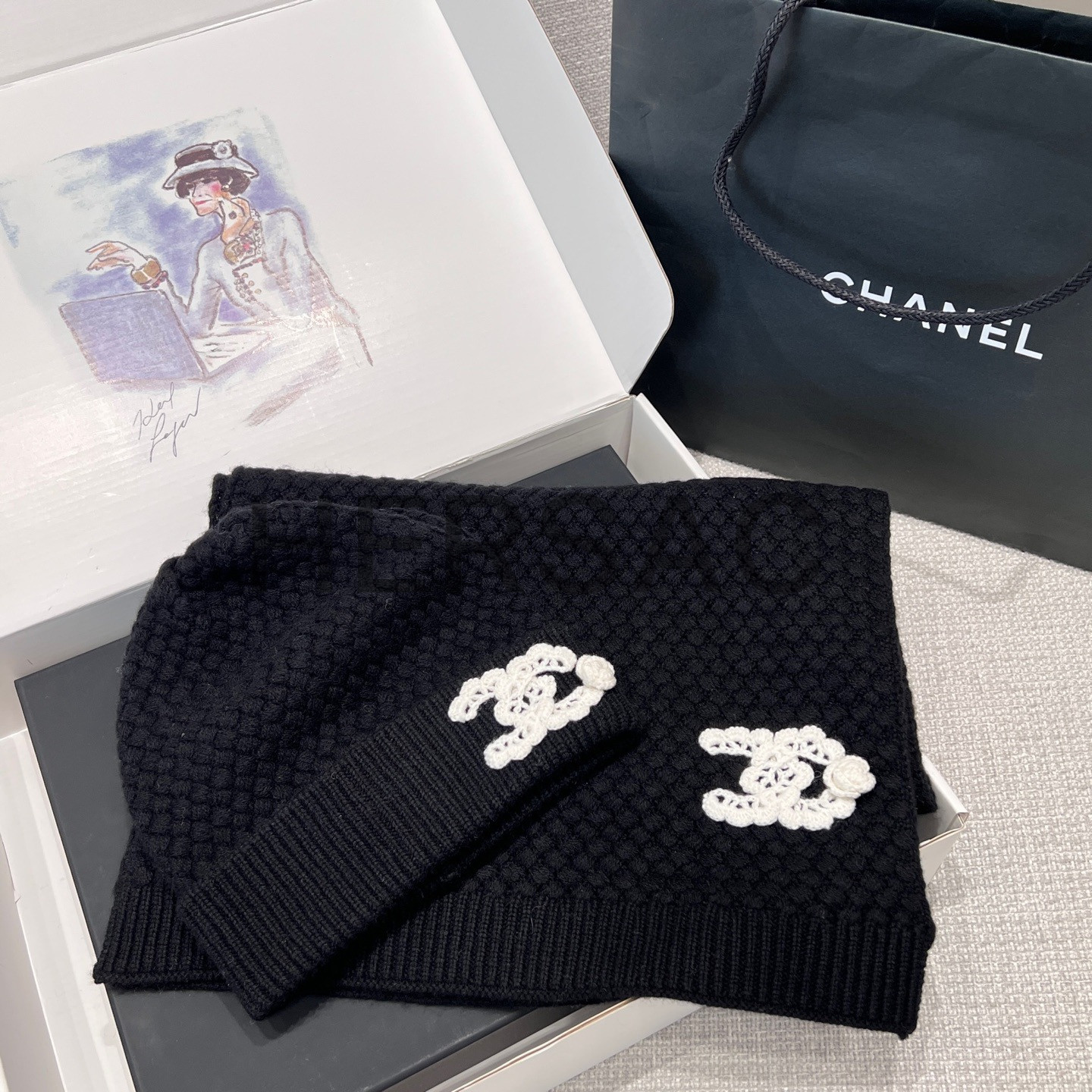 샤넬 25FW 캐시미어 CC로고 까멜리아 니트 스카프 AAB132 B20782 U1605