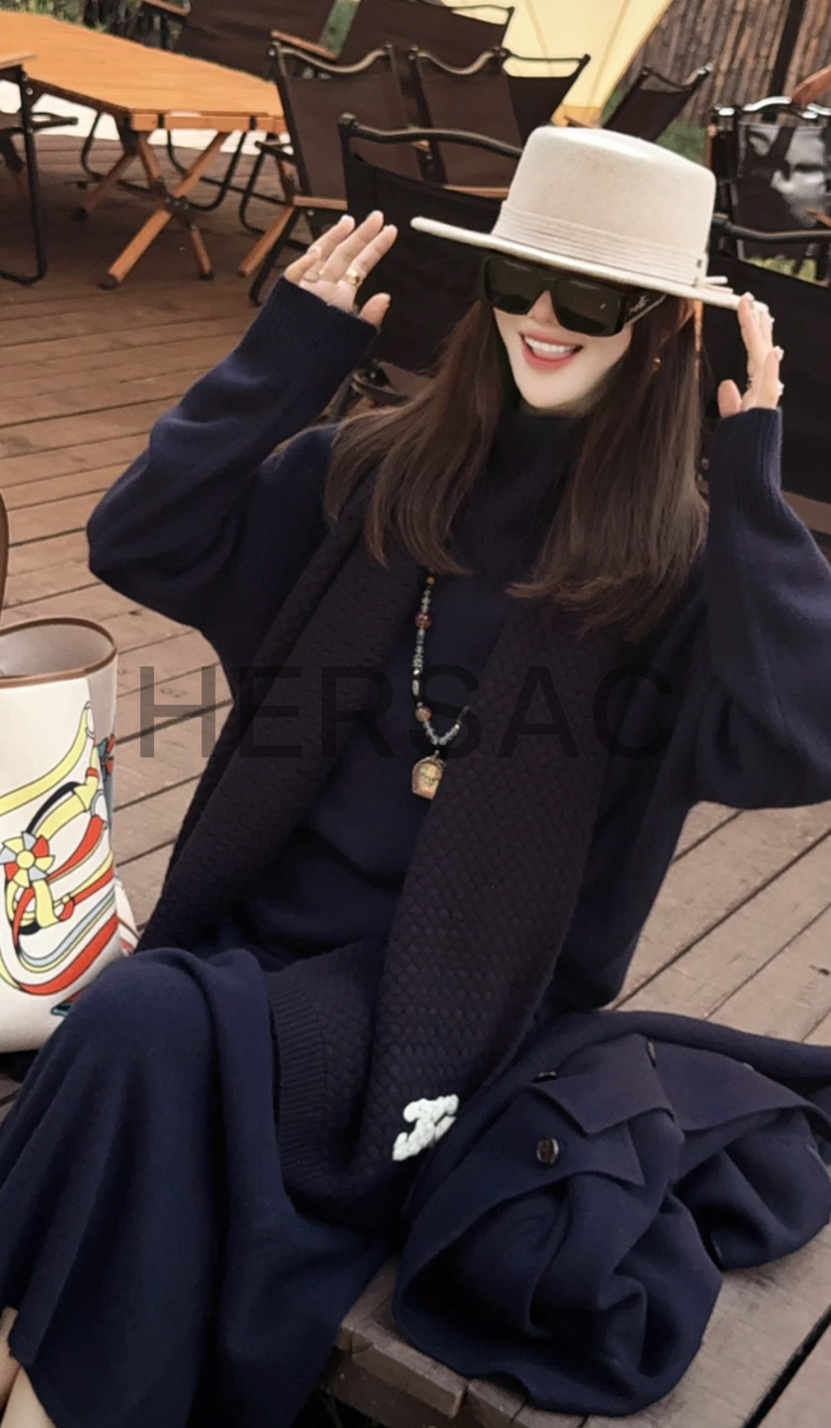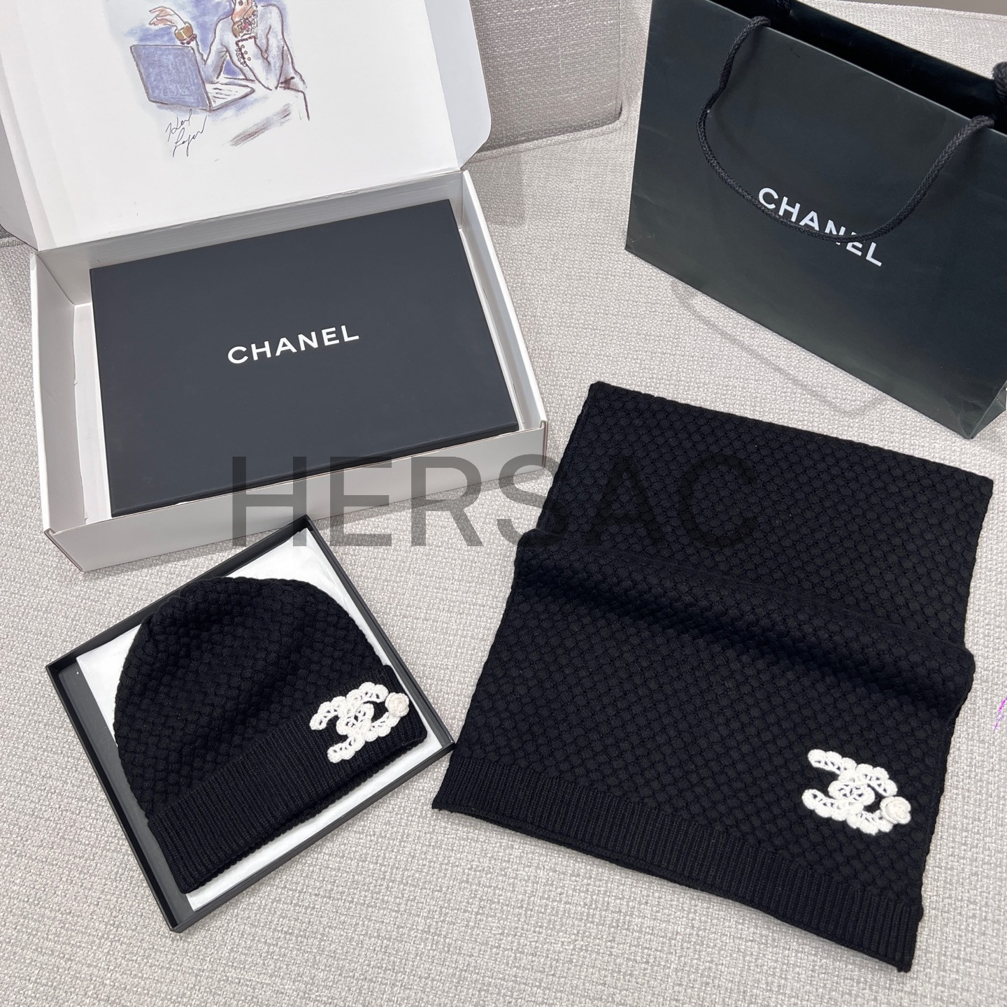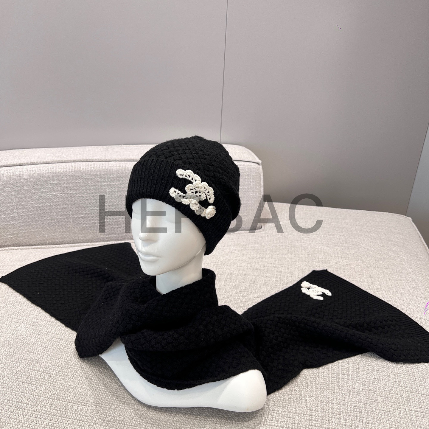 샤넬 25FW 캐시미어 CC로고 까멜리아 니트 스카프 AAB132 B20782 U1605