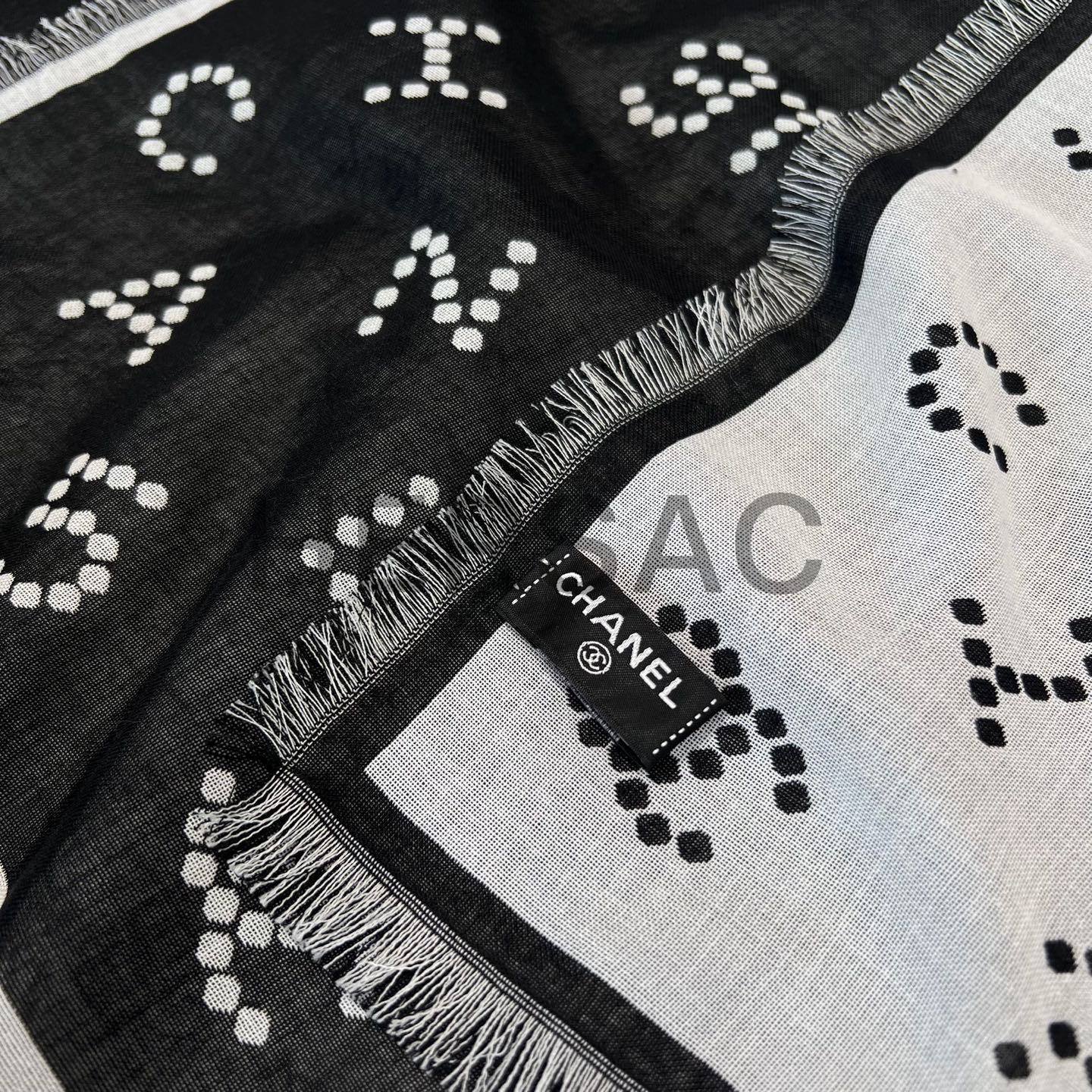 CHANEL 24 Season Wool CC Navy White Two-Tone Stoll Large muffler