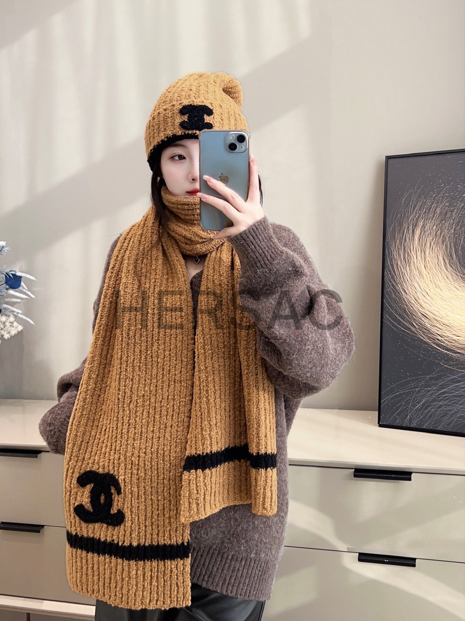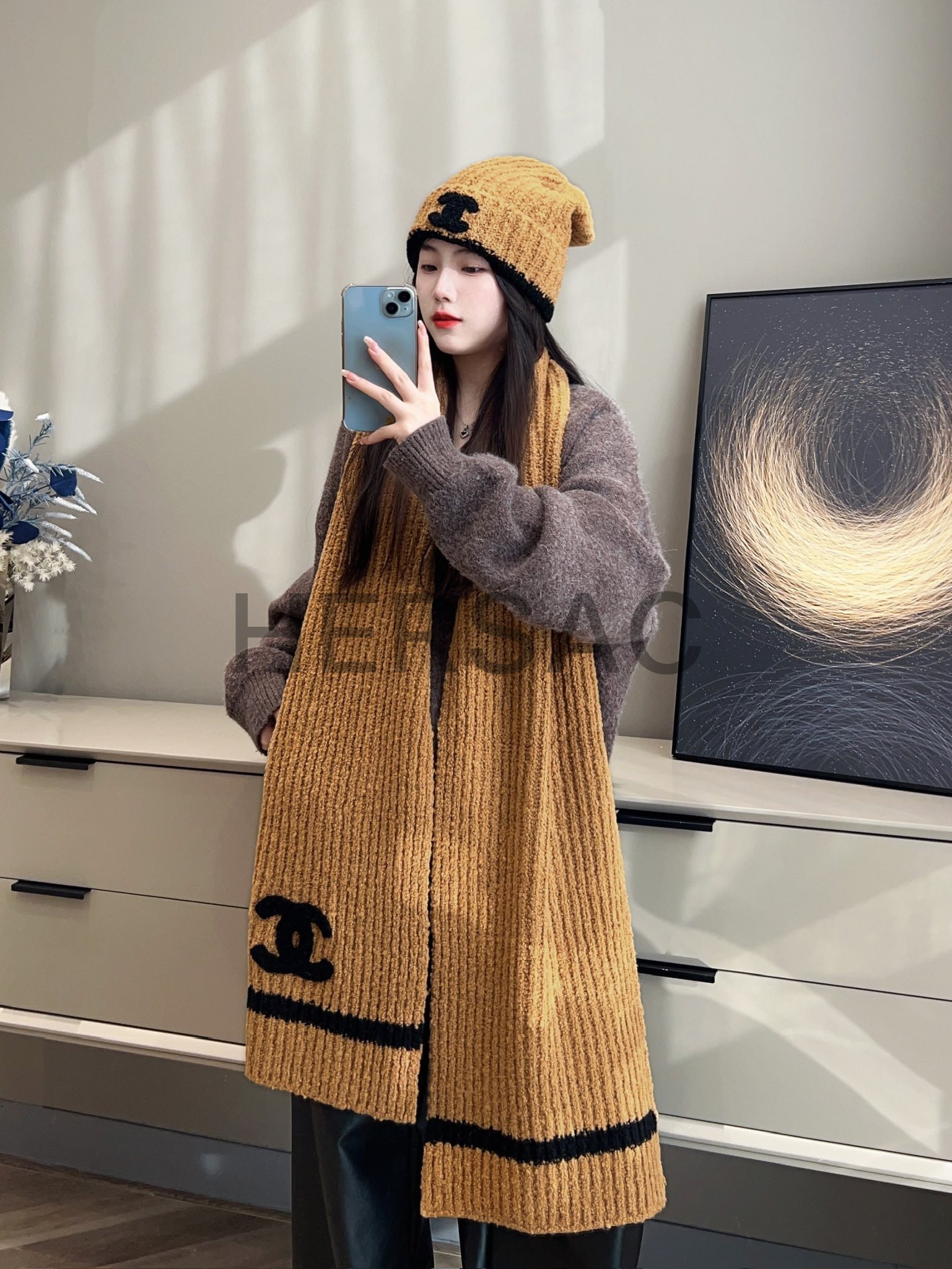 샤넬 머플러 캐시미어 & 블랙 베이지 AA9423-B13856-NQ767
