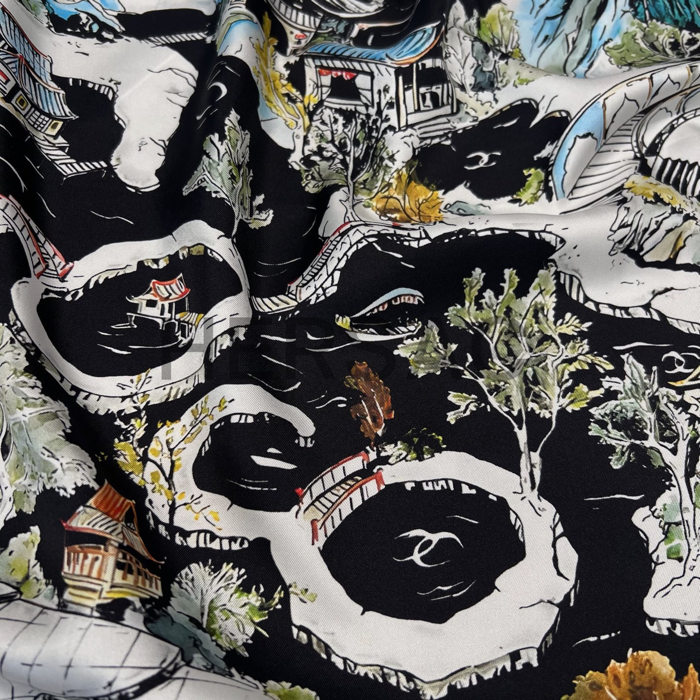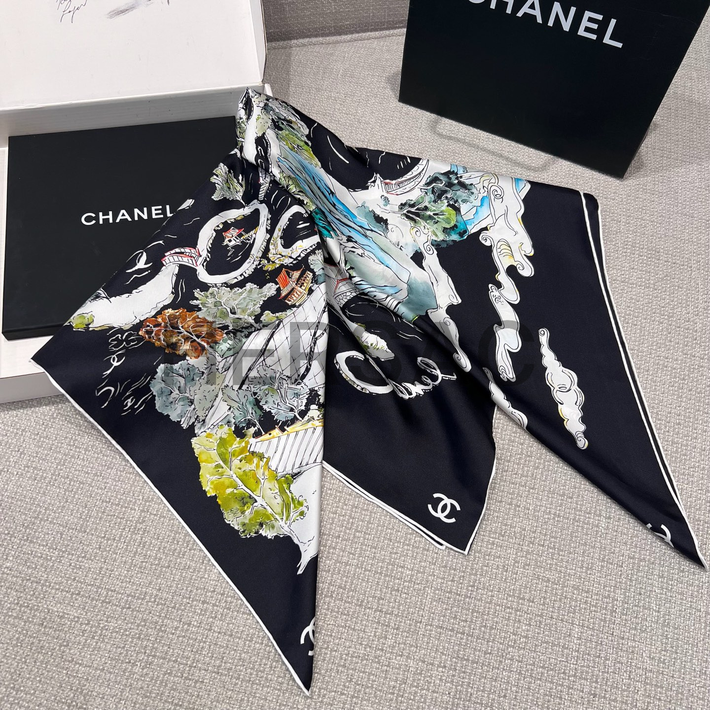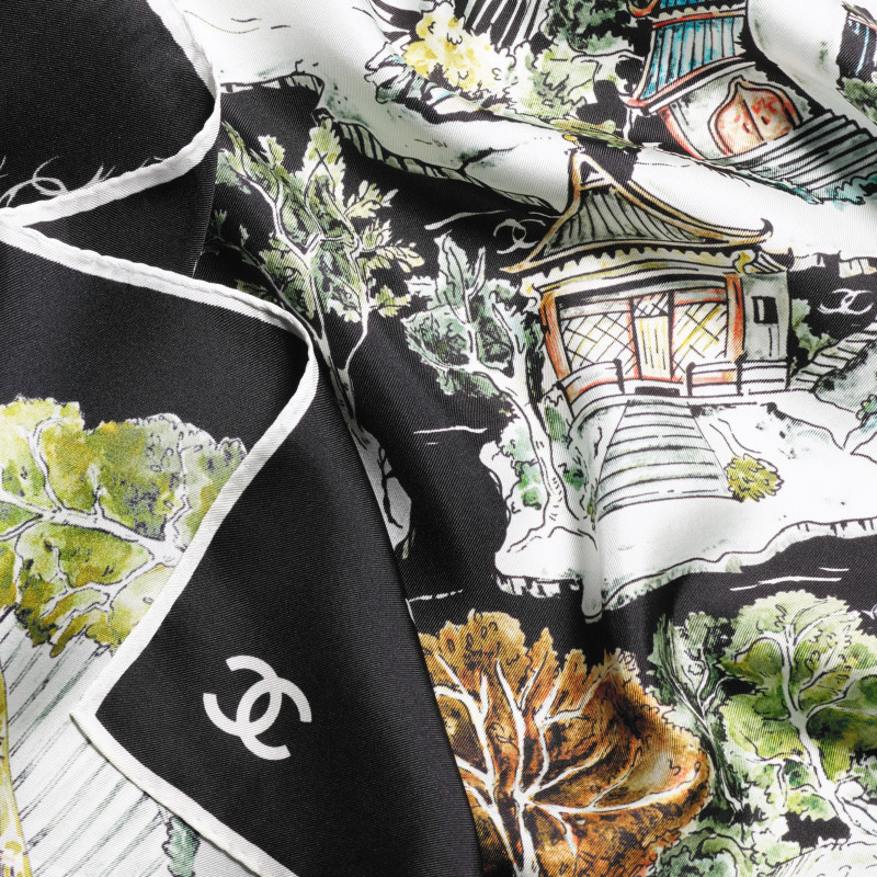 샤넬 스퀘어 스카프 실크 트윌 & 블랙 멀티컬러 화이트 AAB102-B20750-U1949