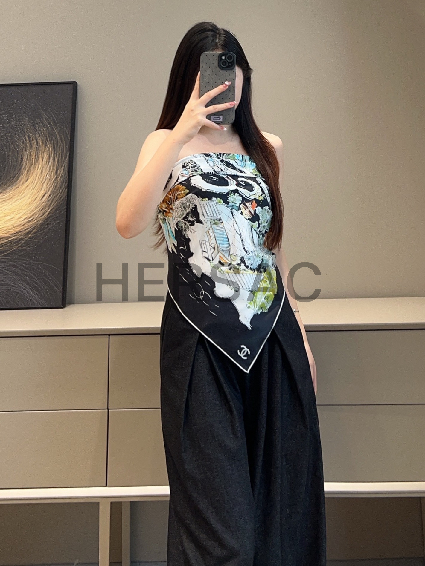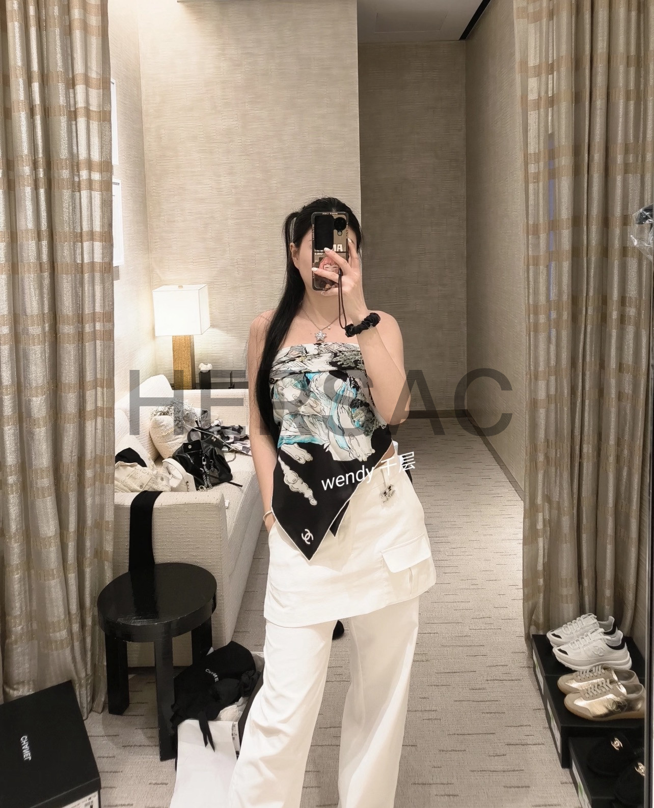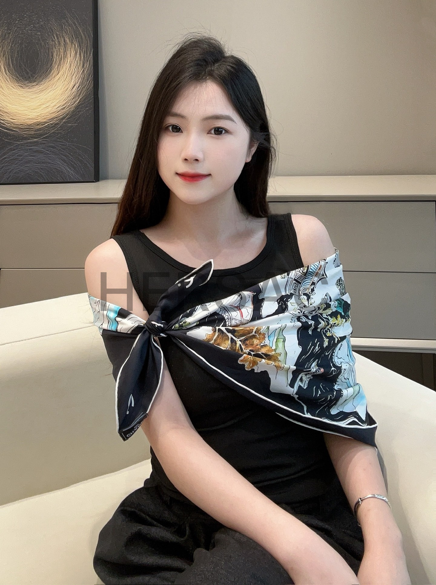 샤넬 스퀘어 스카프 실크 트윌 & 블랙 멀티컬러 화이트 AAB102-B20750-U1949