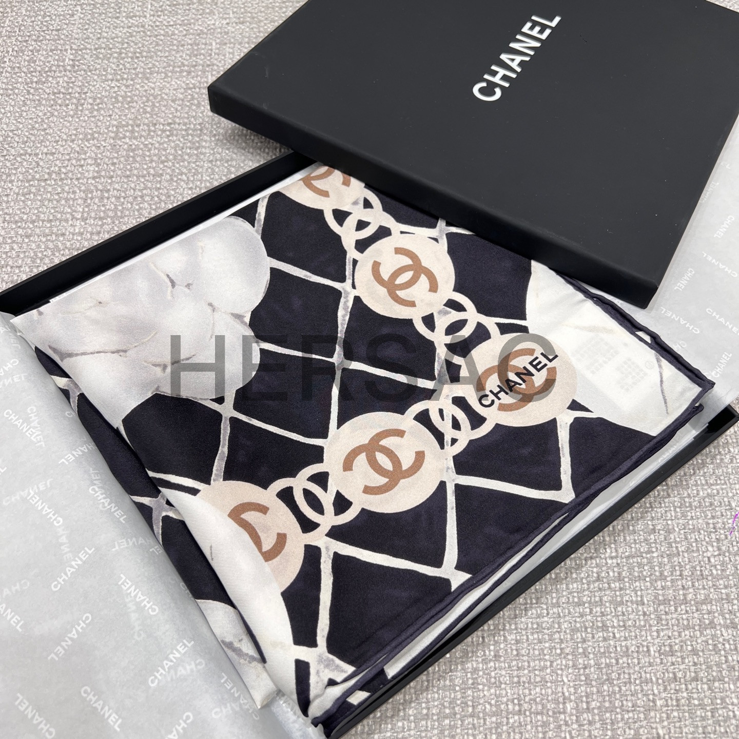 샤넬 스퀘어 스카프 실크 트윌 & 블랙 A39577-X10321-94305