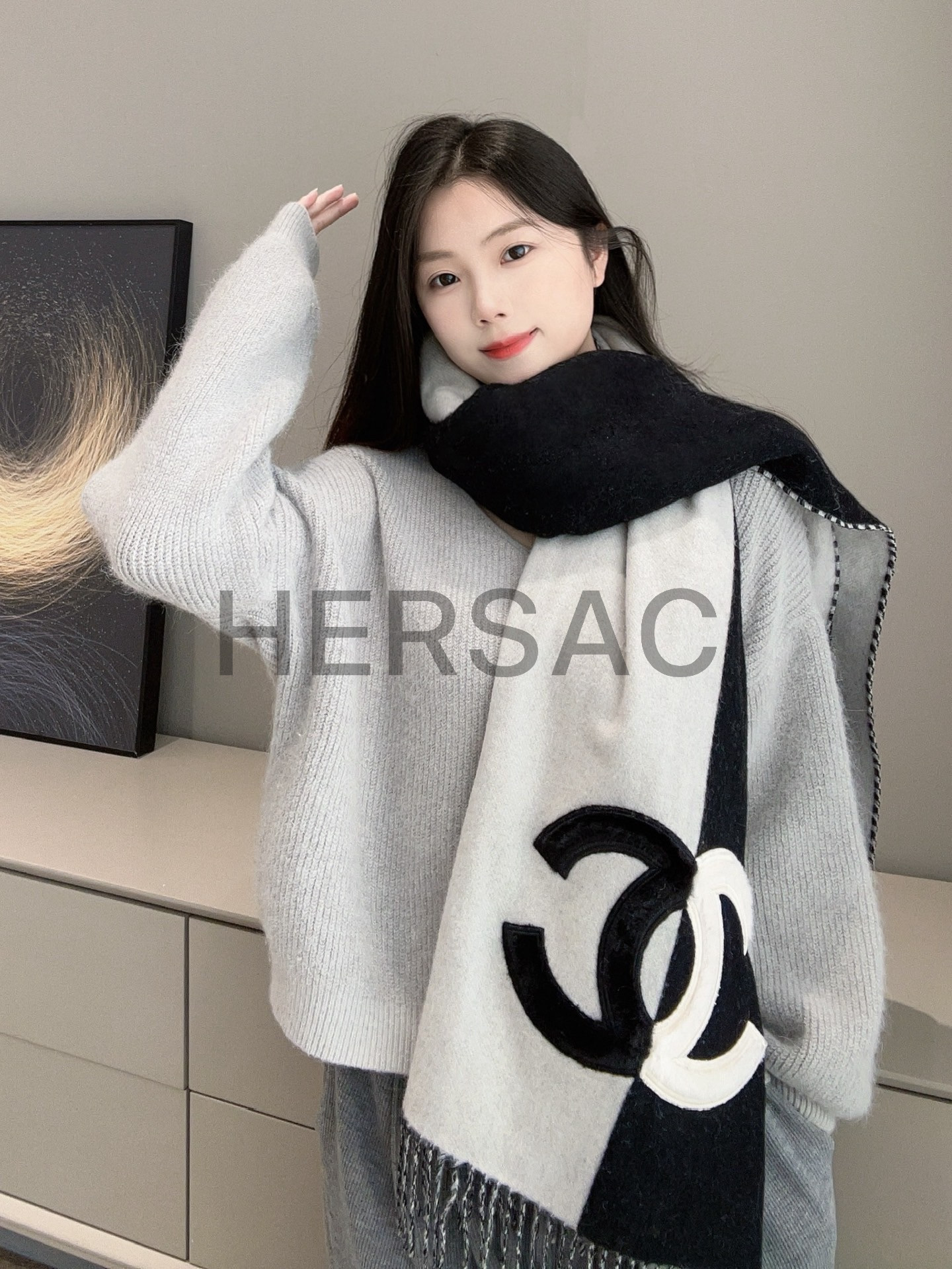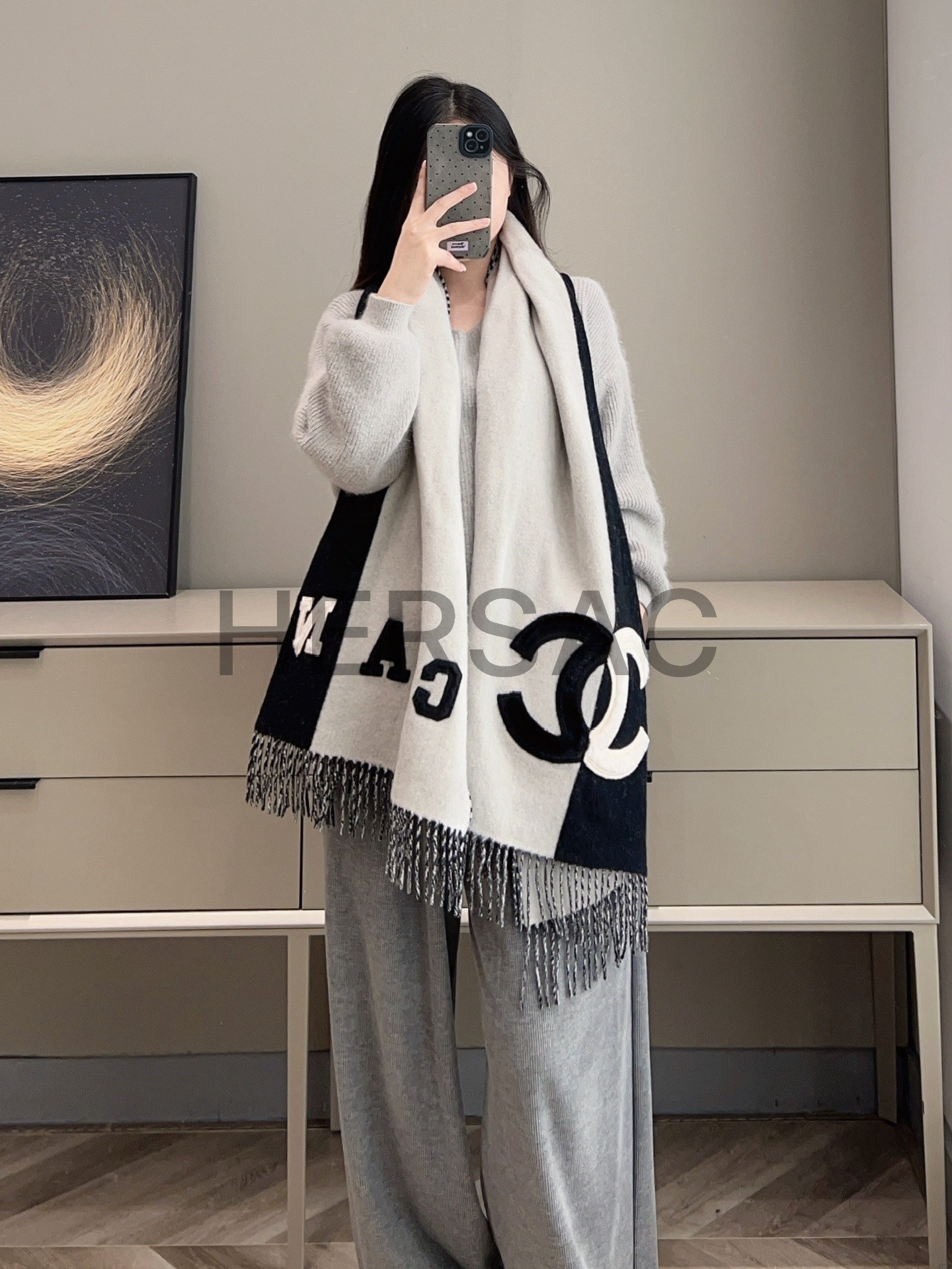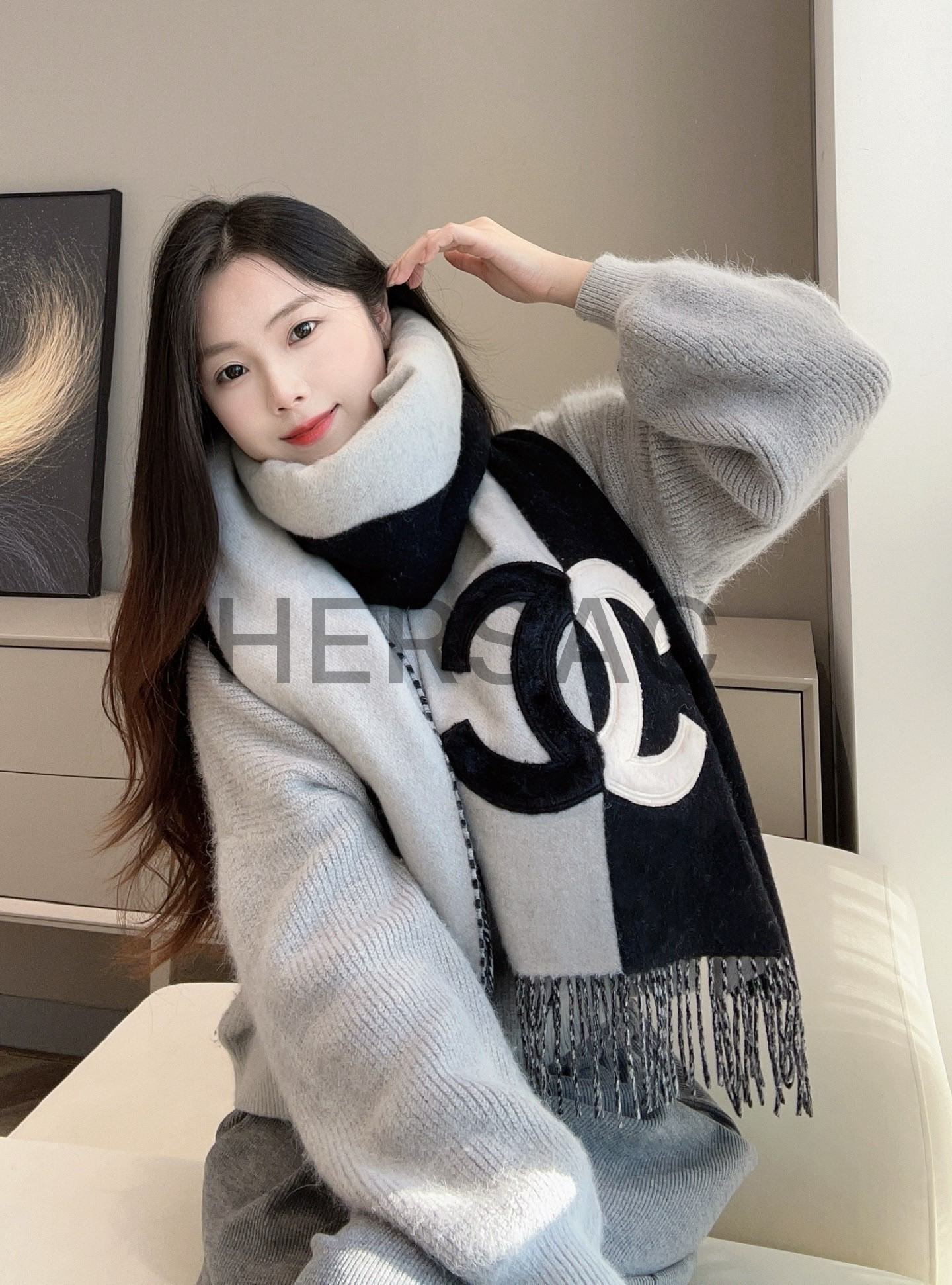 샤넬 스톨 캐시미어 전단 양가죽 머플리 AAA255B17089NZ303