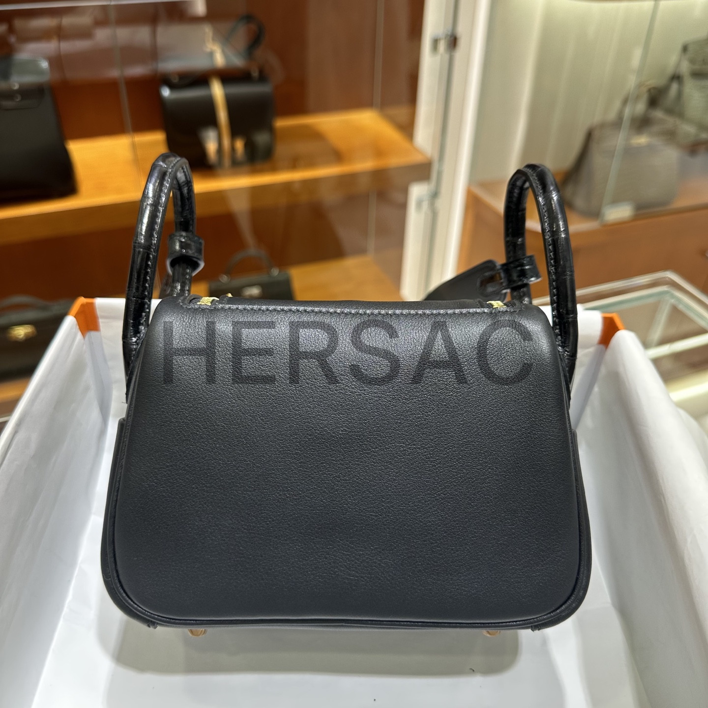 에르메스 미니 터치 린디 스위프트 엘리게이터 블랙 골드